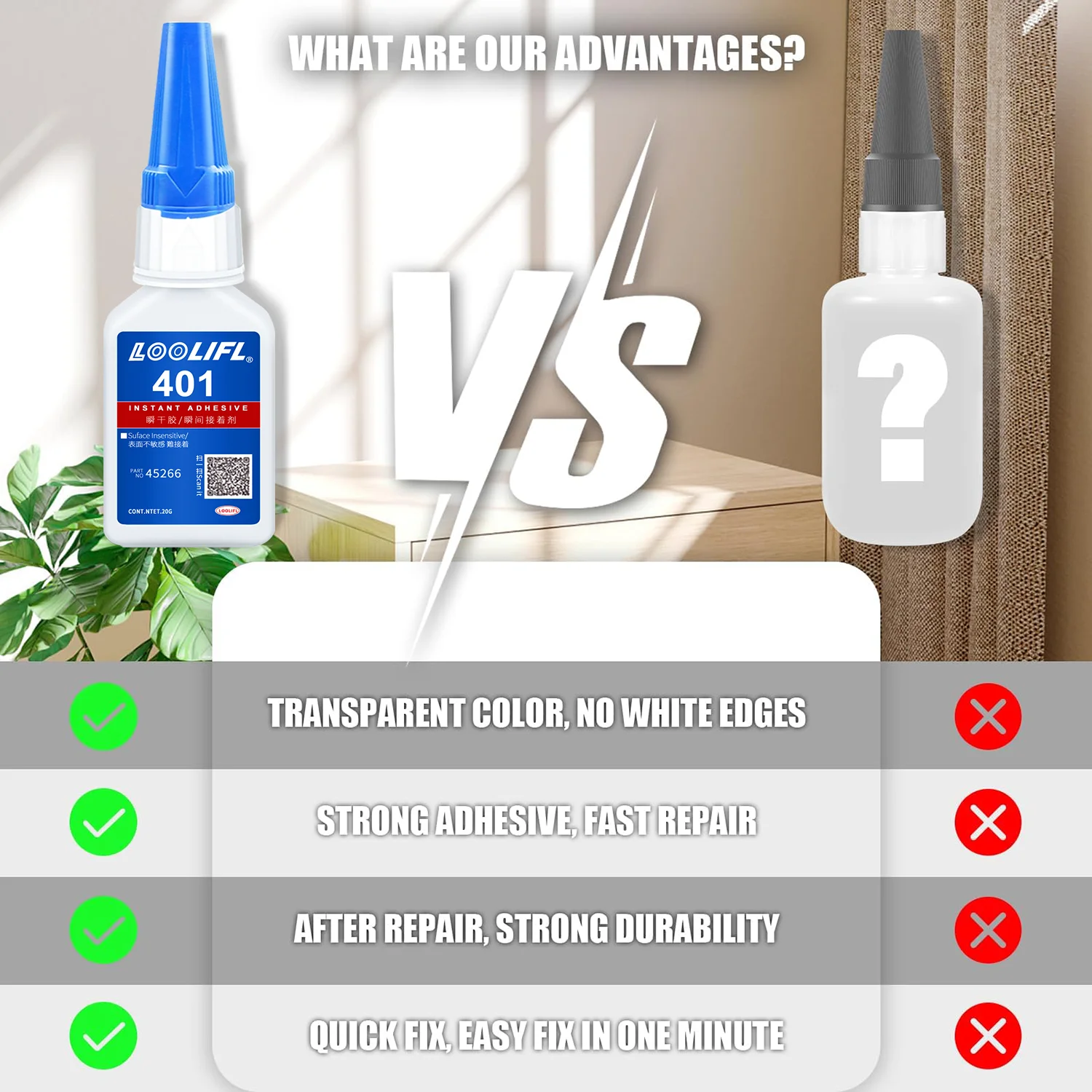 LOOLIFL 20ml 401 Instant Strong Super Glue Universal Superglue Mighty Instant Glue for Resin Ceramic Metal Glass Fast Dry Glue