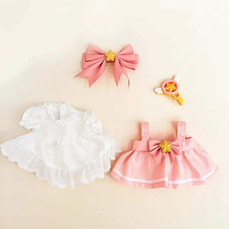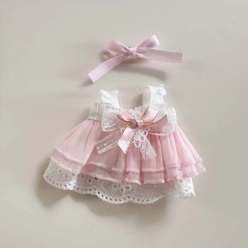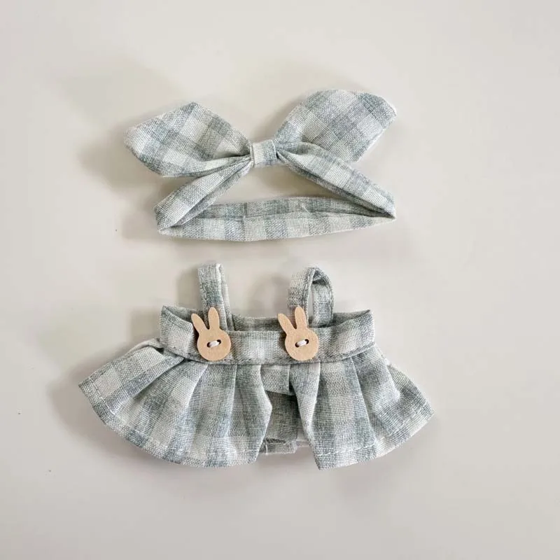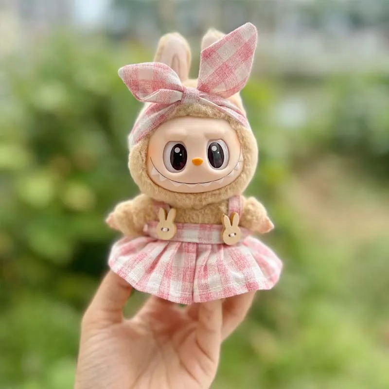 Mini Plush Doll's Clothes Outfit Accessories For Labubu Idol V1 V2 sitting party Plaid skirt Headband Set Clothing Dress Up Toys