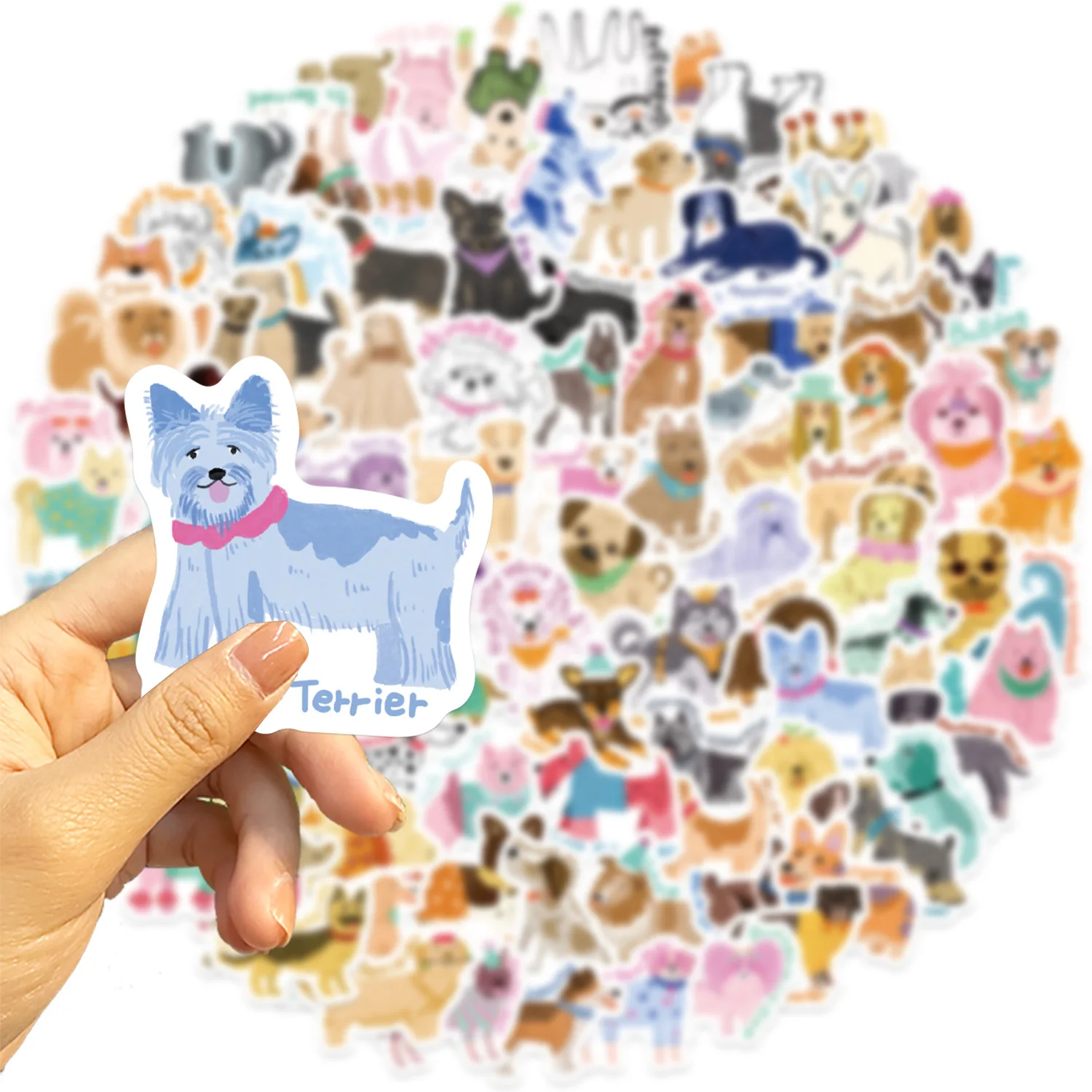 100Pcs Cartoon Cute Hand-painted Wind Dog Stickers Diary Scrapbook Phone Case Laptop Water Bottle Waterproof Decorative Stickers