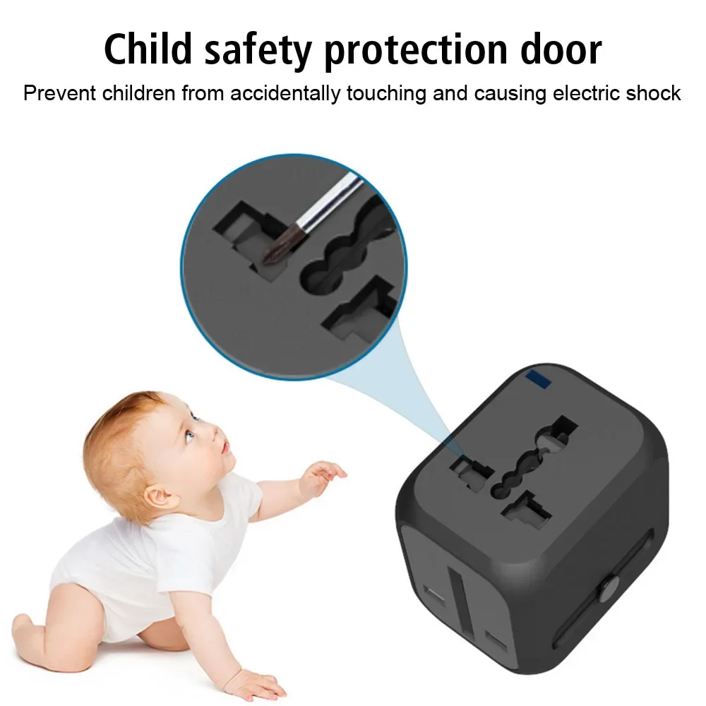 All-in-One Wall Travel Charger Adapter - US EU UK AU Plugs with 2 USB & 1 Type C, Universal for Travel