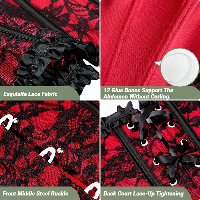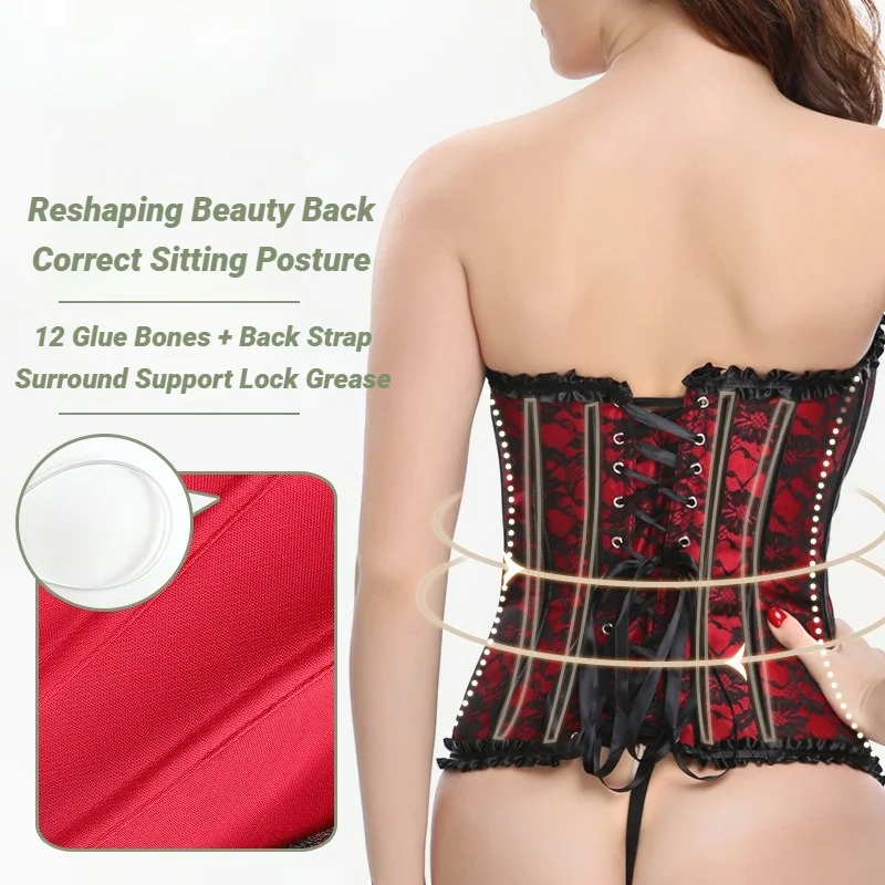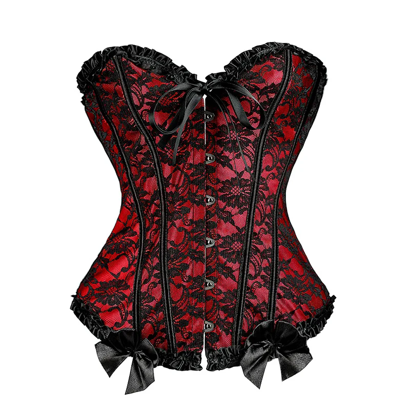 Women Corsets Bustiers Floral Lace Tops Shapewear Burlesque Vintage Corset Gothic Satin Lingerie Corselet Overbust