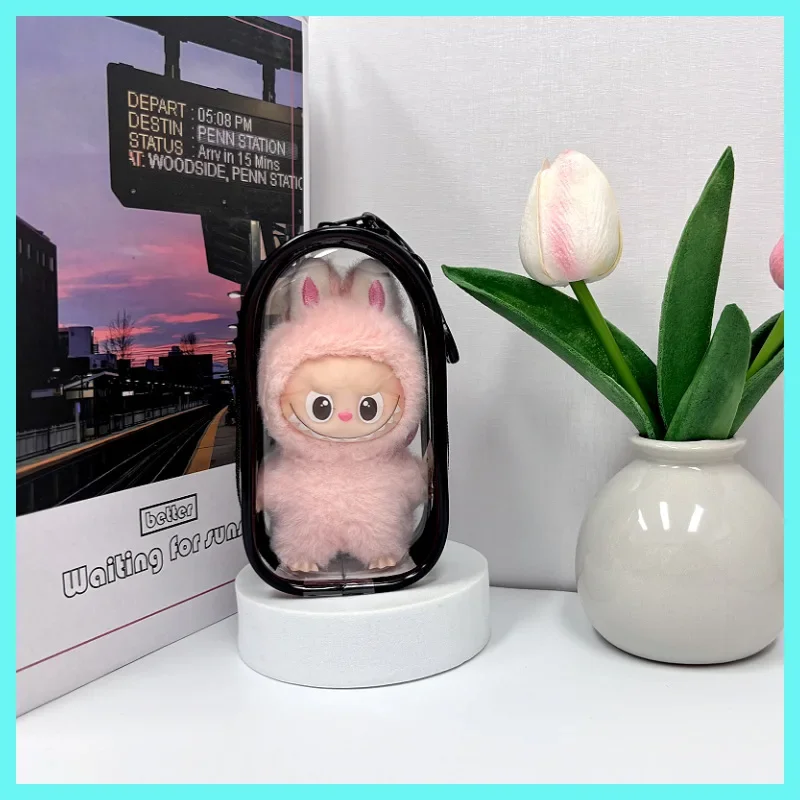 Transparent Protective Case For Labubu Pin for Love V4 Dustproof Cover Organizer Box Plush Doll Accessories Kids Birthday Gift