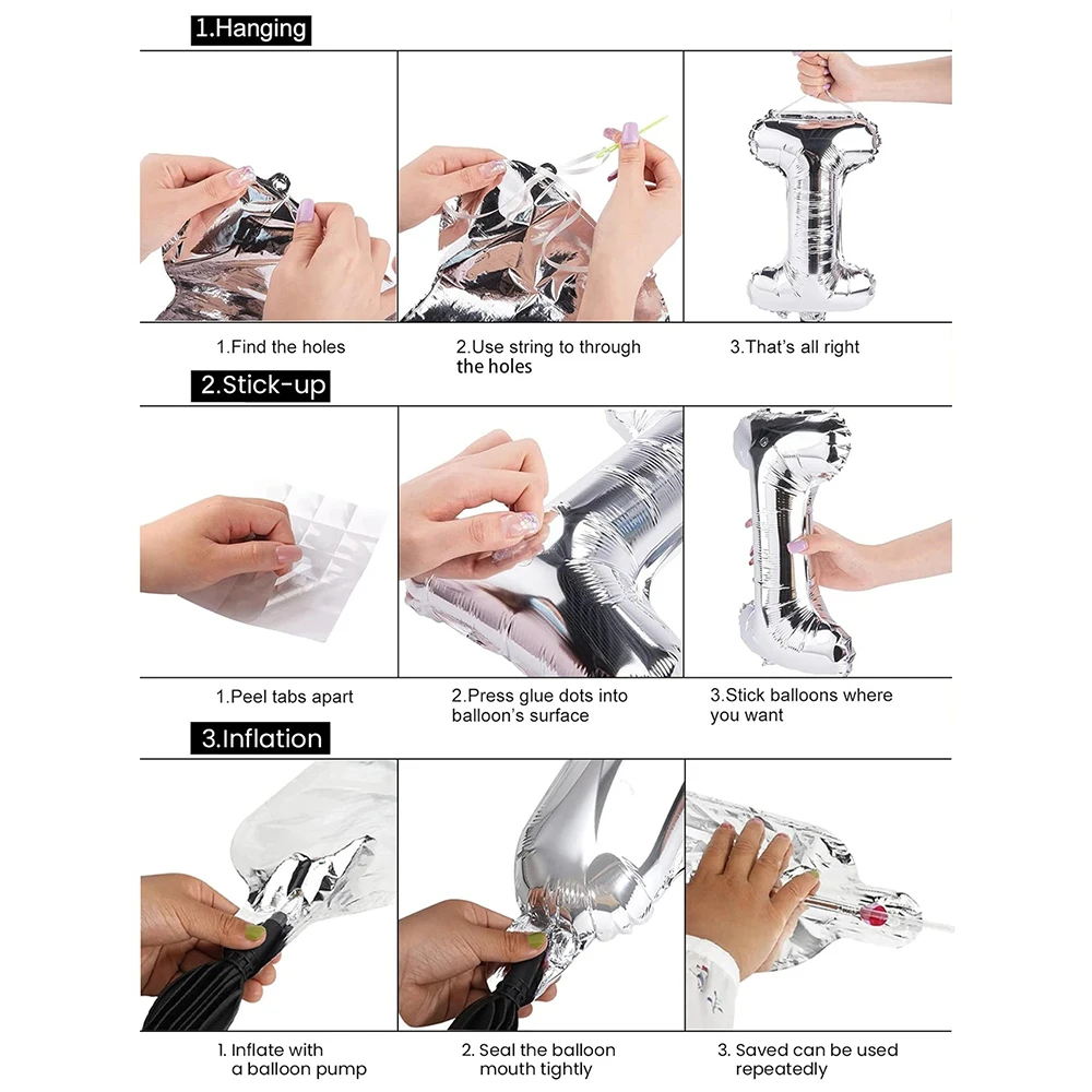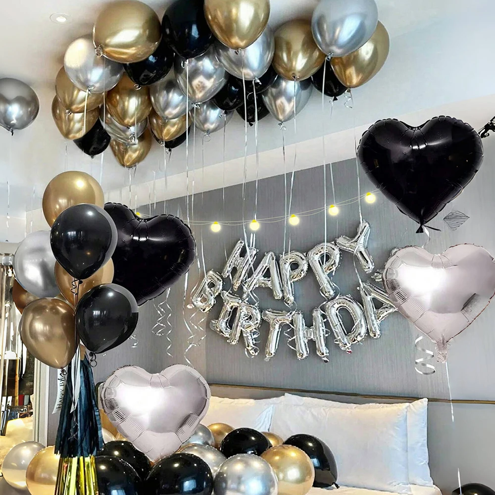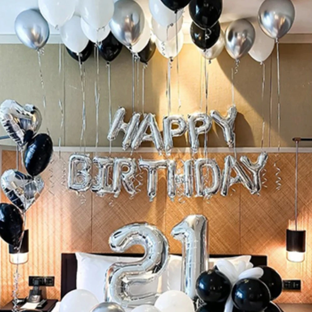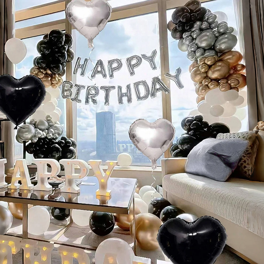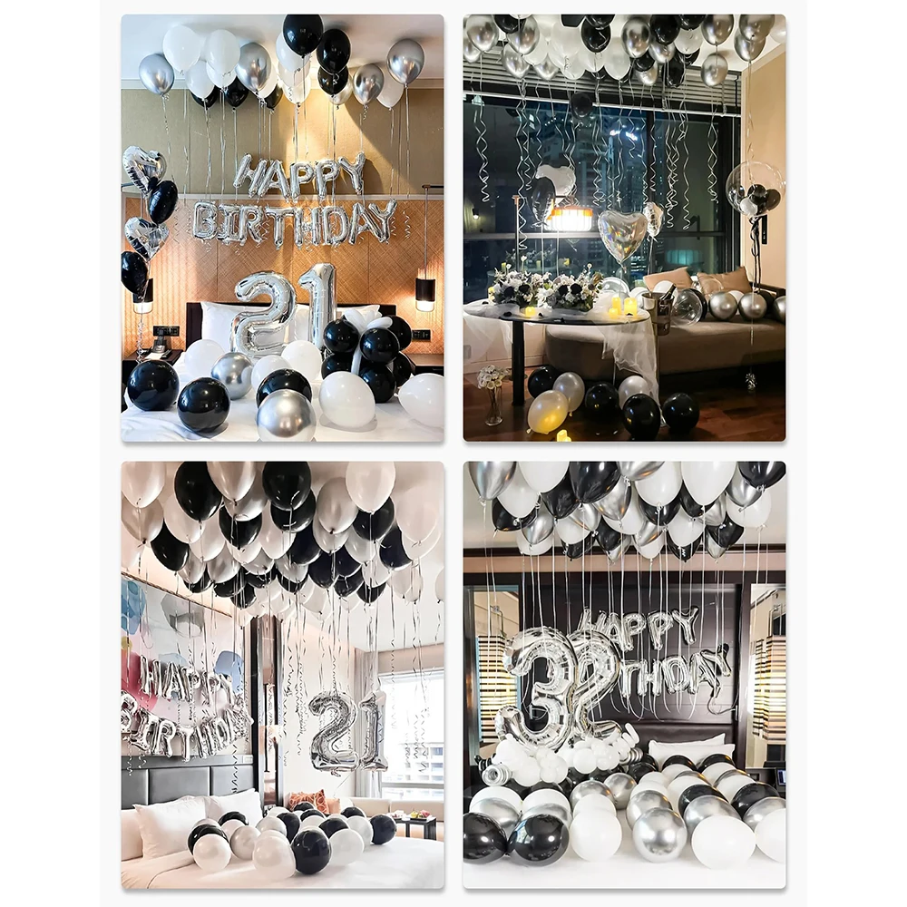 30/52/54 Black And White Balloons Set Silver Happy Birthday Banner Balloons For Birthday Decoration,Party,Holiday Decoration
