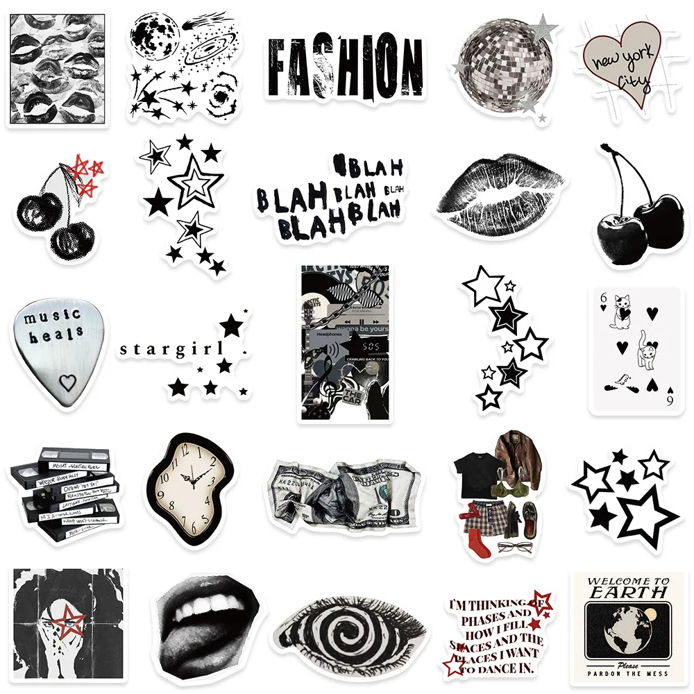 aliexpress , ali , shop , ali shop , online , store , online shop , online store , buy , sell , 50pcs 90s 00s Retro Black and White Y2K Girls Aesthetic Stickers For Luggage Laptop Guitar Phone Diary Waterproof Vinyl Decals