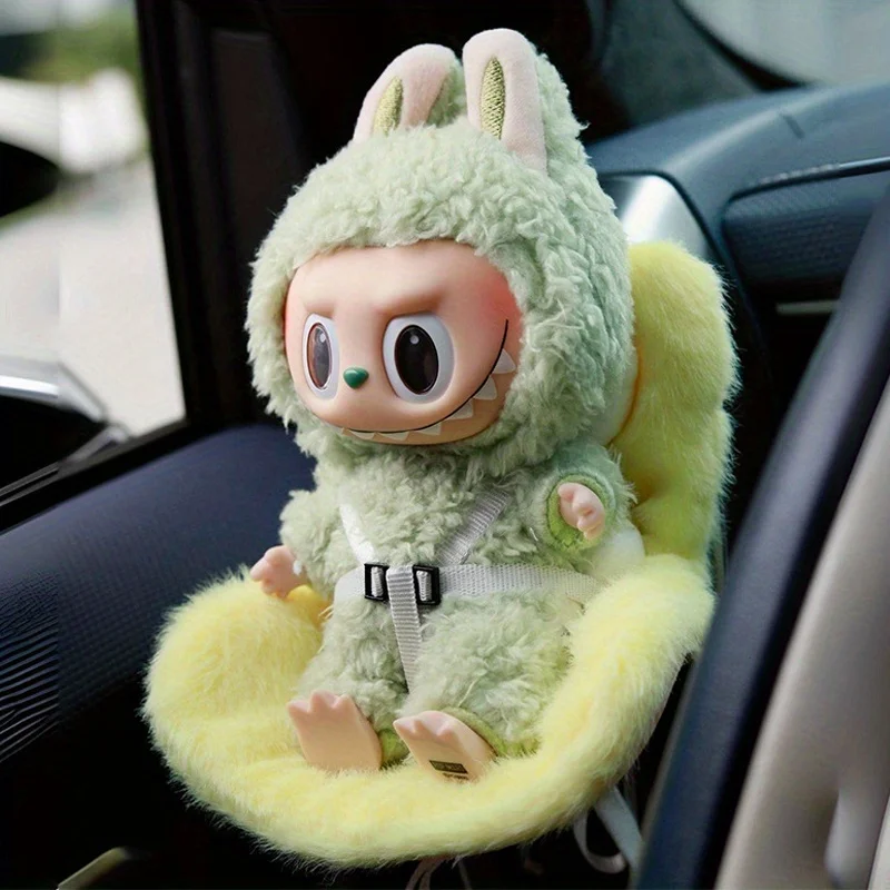 Cute Labubu 17cm doll car seat accessory with vent clip, a car safety seat for doll collectors (excluding dolls)