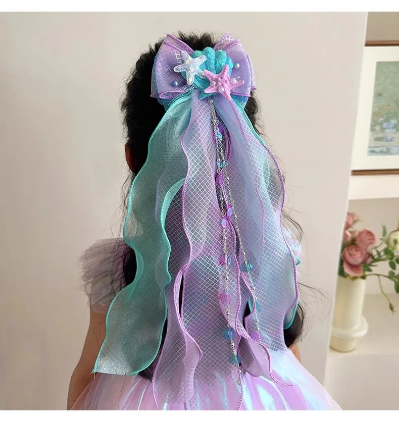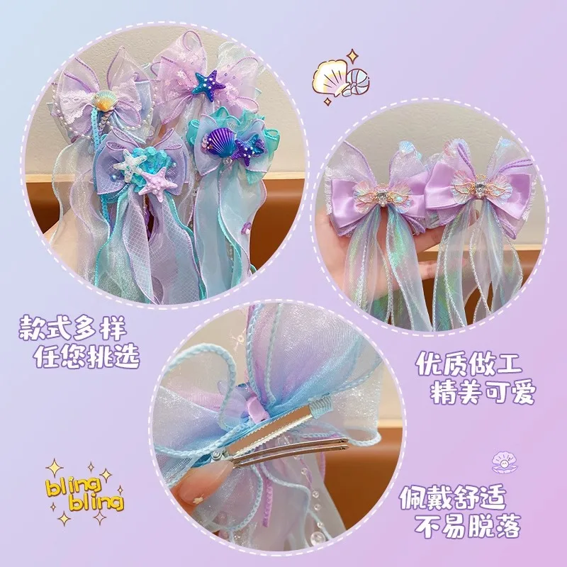 Children's Hairpin Girl Mermaid Princess Gauze Hair Band Baby Hairpin Little Ball Head Rubber Band Accessories