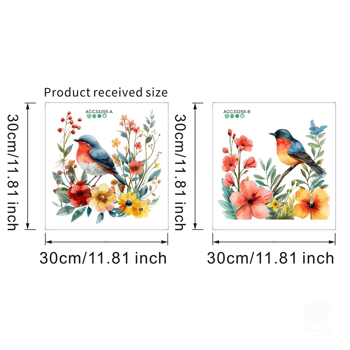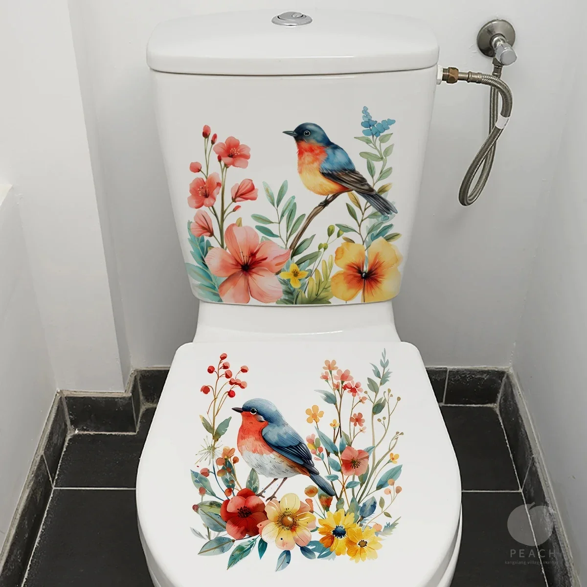 2PCS DIY bathroom sticker bird flower design for bathroom water tank decoration toilet sticker detachable waterproof