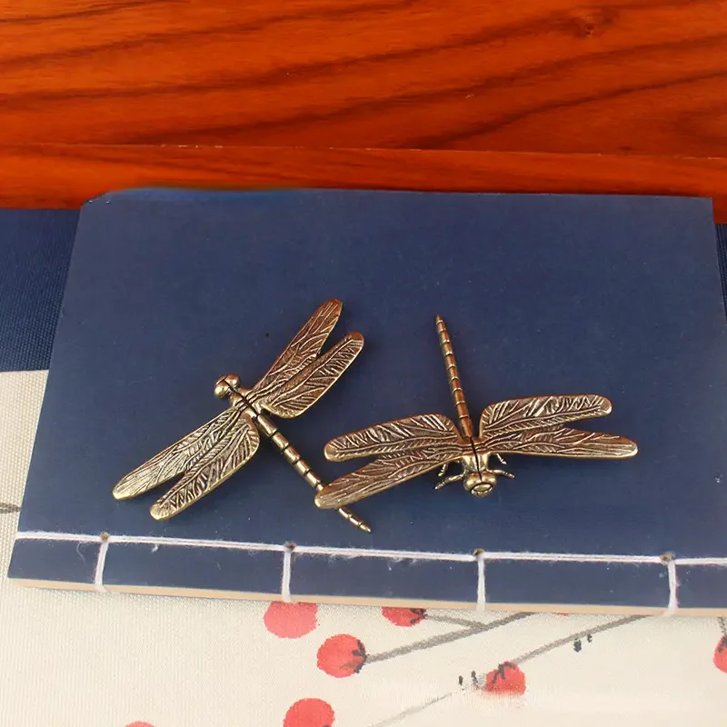 Vintage Brass Dragonfly Figurine - Antique-Style Home & Office Desk Decor, Creative Tea Pet Collectible