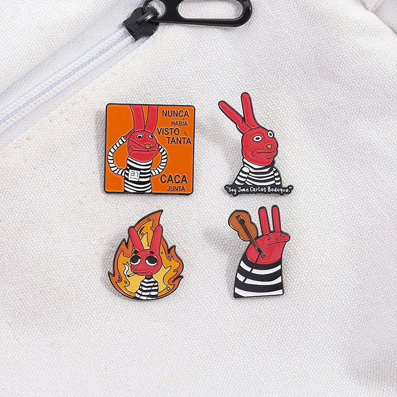 Cartoon Angry Red Rabbit Enamel Pins Nunca Habia Visto Tanta Prison Bunny Brooches Lapel Badge Anime Jewelry Gifts For Friends