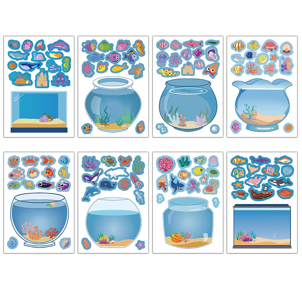 8PCS Lucky Fish Tank Puzzle Sticker Handmade DIY Notebook Desktop Creative Decoration Waterproof
