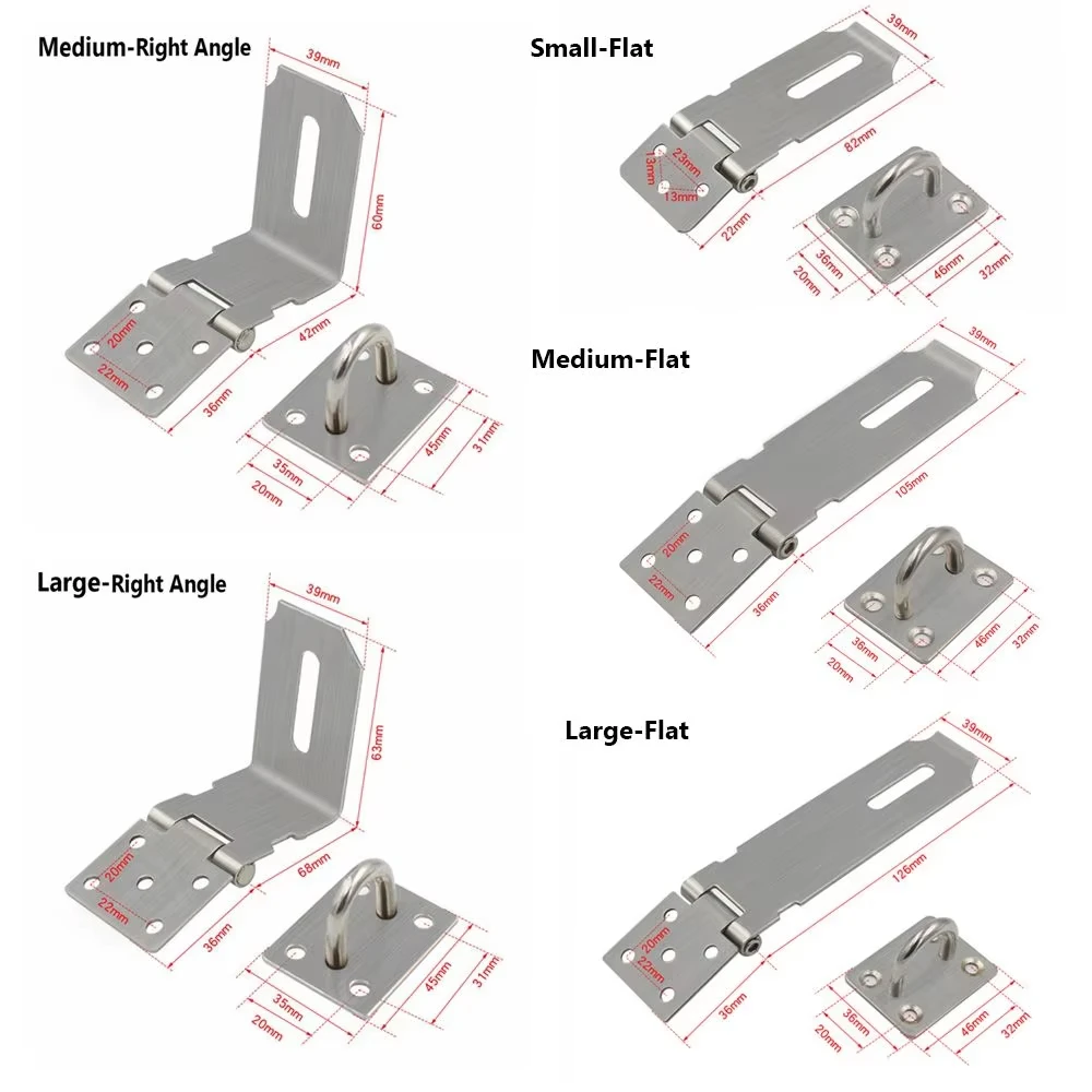 Stainless Steel Padlock Hasp Door Clasp Lock 90 Degree Right Angle Shed Gate Latch Household Burglar-proof Bolt Door Buckle