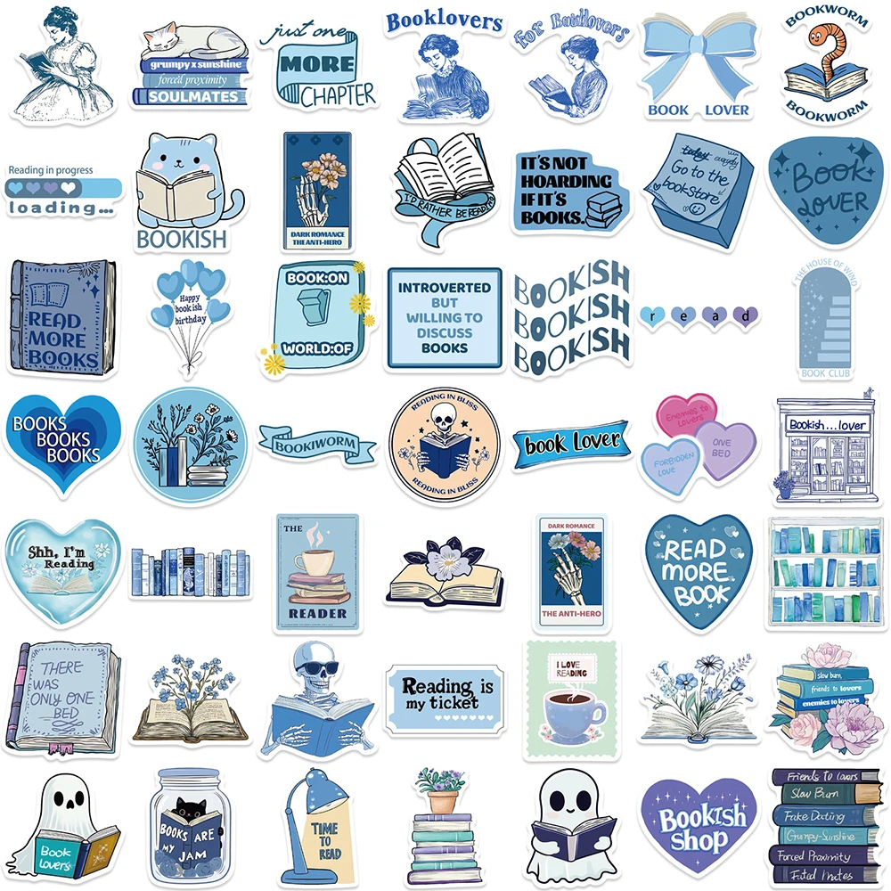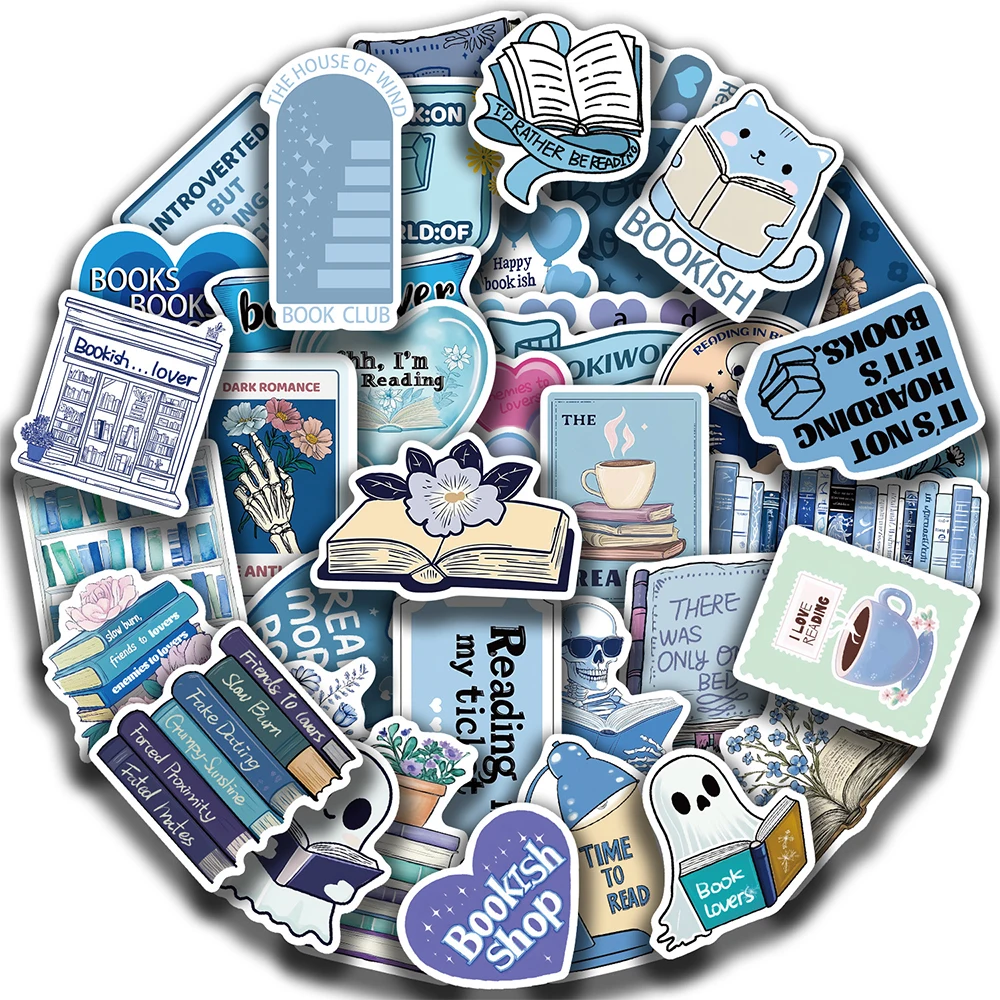10/30/50pcs Cartoon Blue Bookish Graffiti Stickers Cute Reading Book Sticker DIY Notebook Scrapbook Laptop Cool Decals Kids Toys