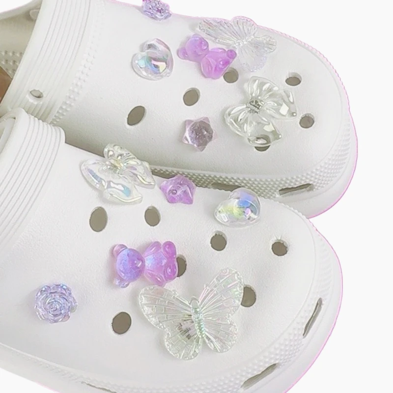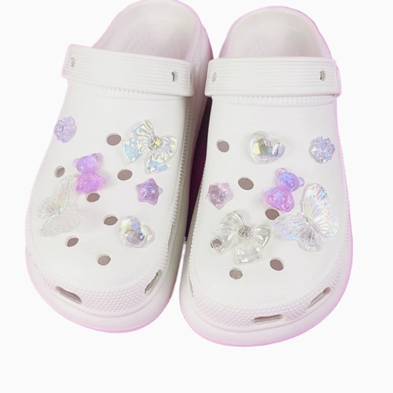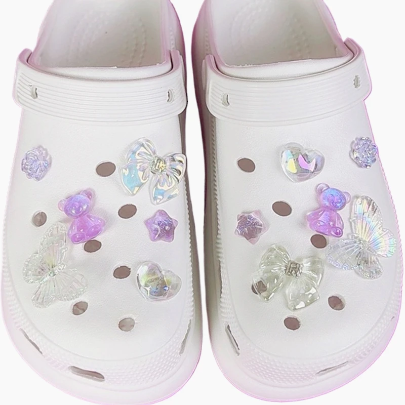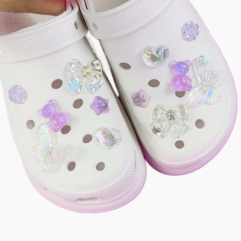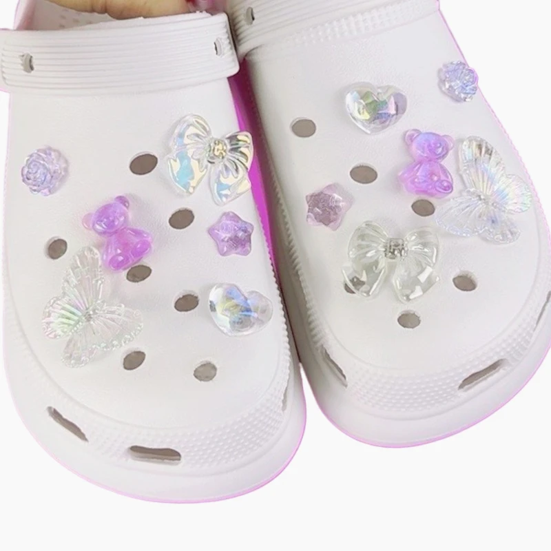 12PCS Fashion Shoe Charms Set Accessories Hole Shoe Buckle Transparent Butterfly Bear Crystal Heart DIY 3D Shoes Decorations