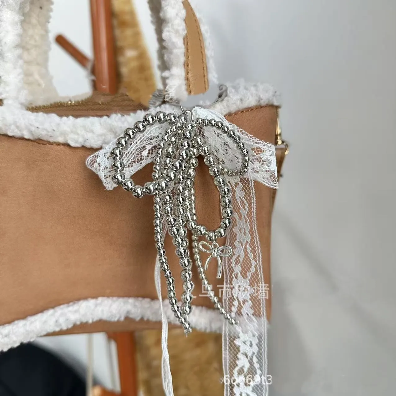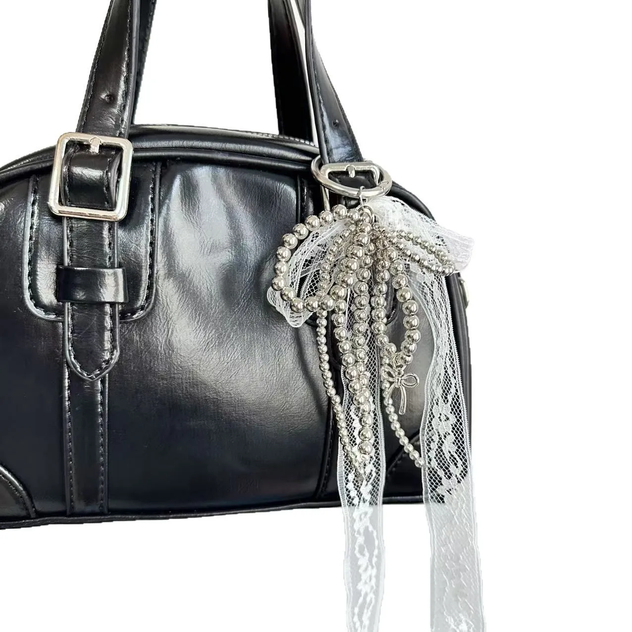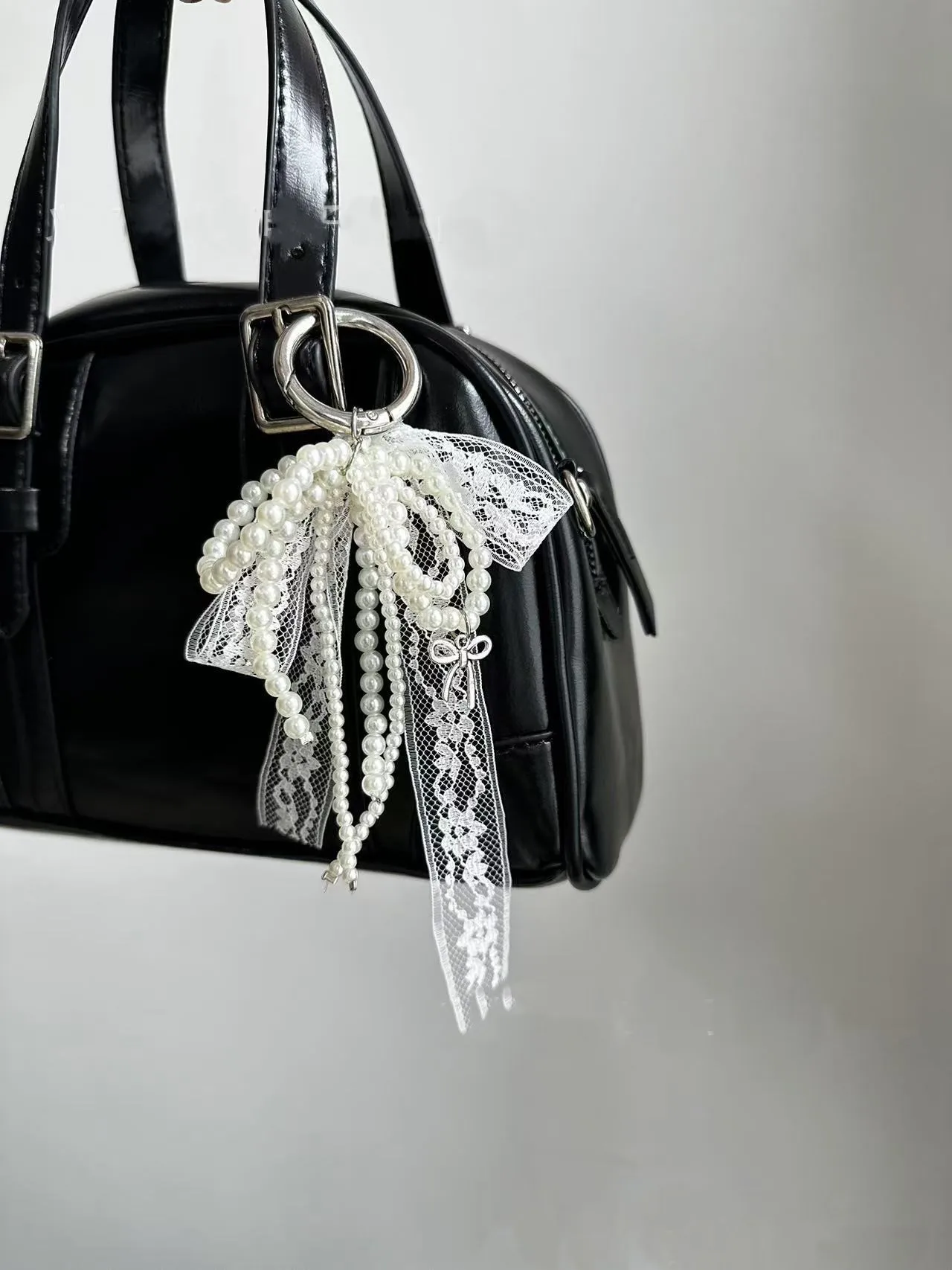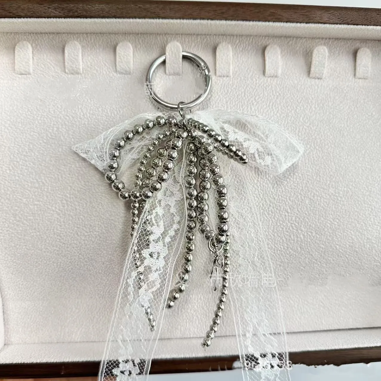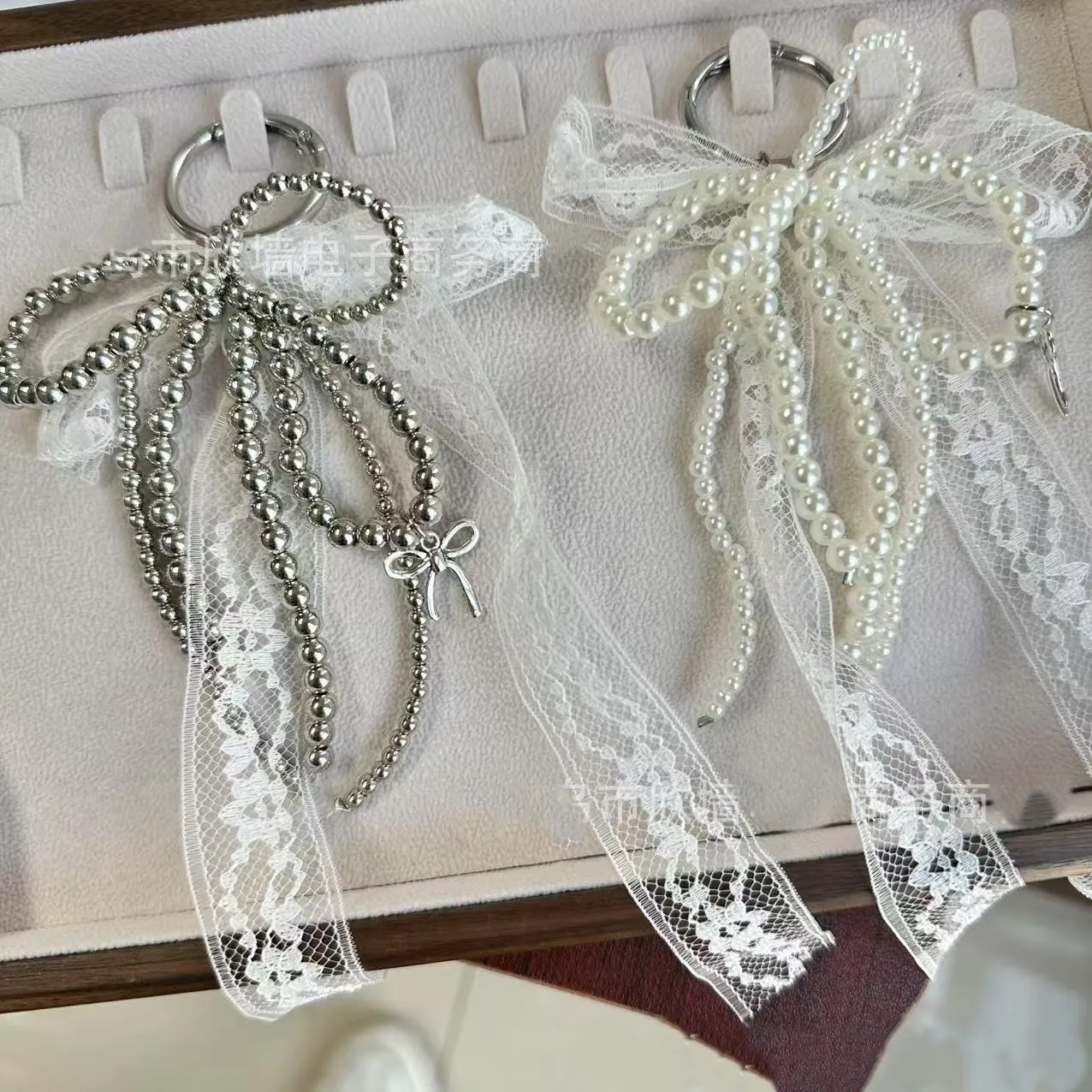 Imitation Pearls Lace Bowknot Keychain Sweet Beaded Pendant Keyring for Women Handbag and Backpack Key Chain Exquisite Ornament