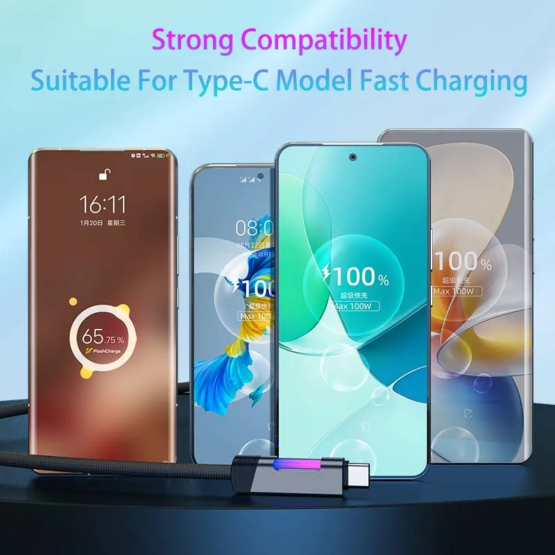 JINMUXI 20-120W USB Type C Cable RGB Color Changing Fast Charging Cable for Xiaomi Huawei Redmi OPPO OnePlus POCO Data Cable