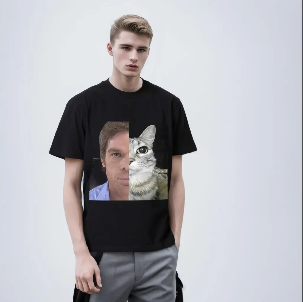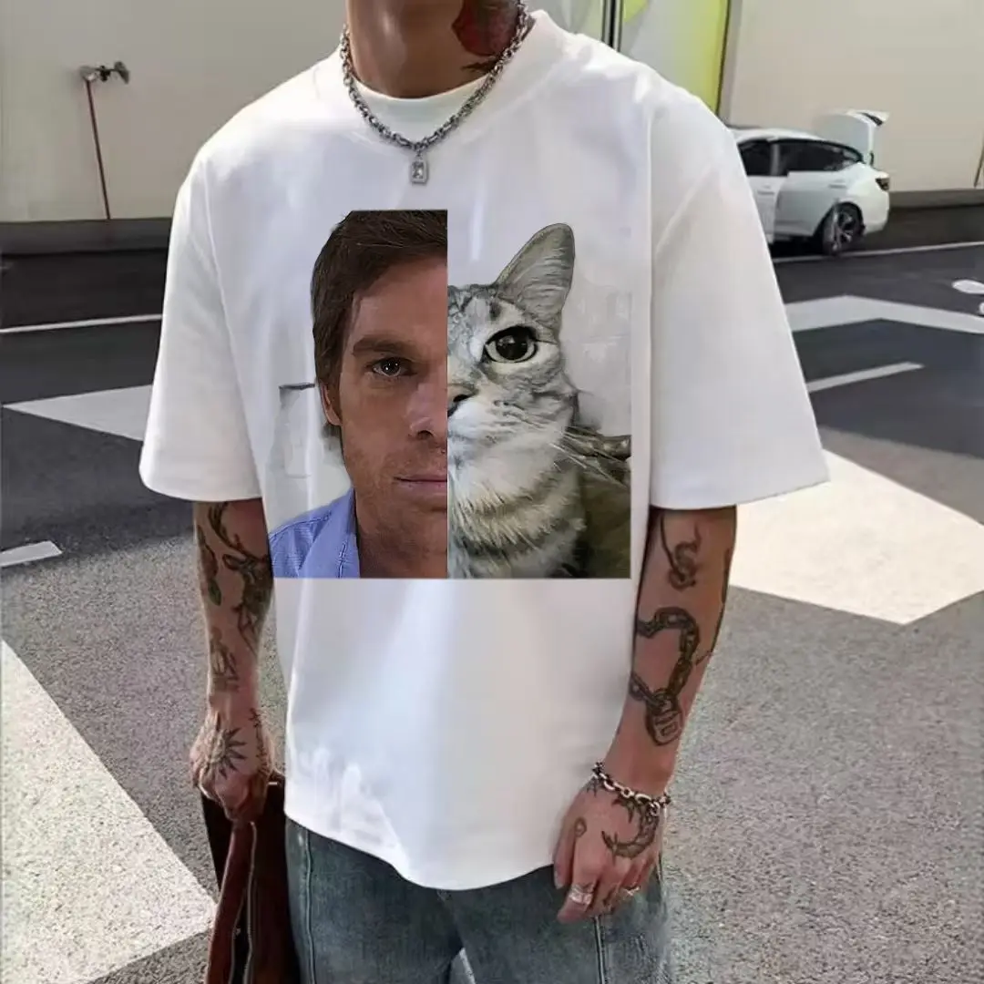 Dexter Morgan Cat T-shirts Funny Cotton Short Sleeve O Neck Tshirt Uni Streetwear Mens Clothes Harajuku Printed T-shirt Tops