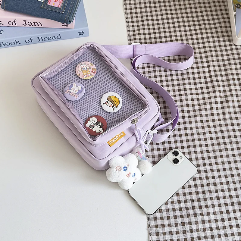Ins Style Crossbody Bag with Transparent Badge Windows Korea Girl Casual Phone Small Bag Anime Sling Bag Display Goods Bag