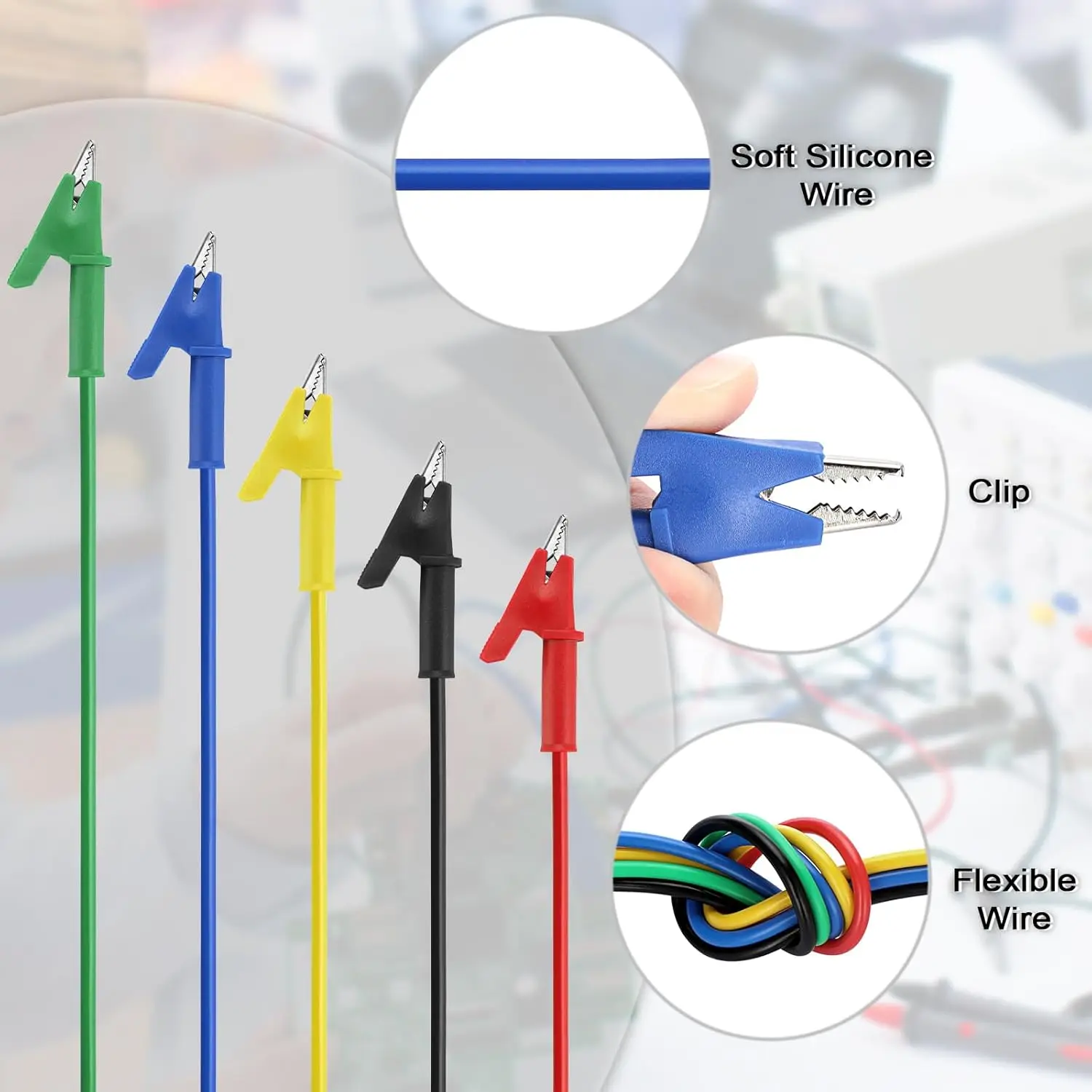 5PCS Alligator Clips Test Leads Dual Ended Crocodile Wire Cable with Insulators Clips Test Flexible Copper Cable for Electrical