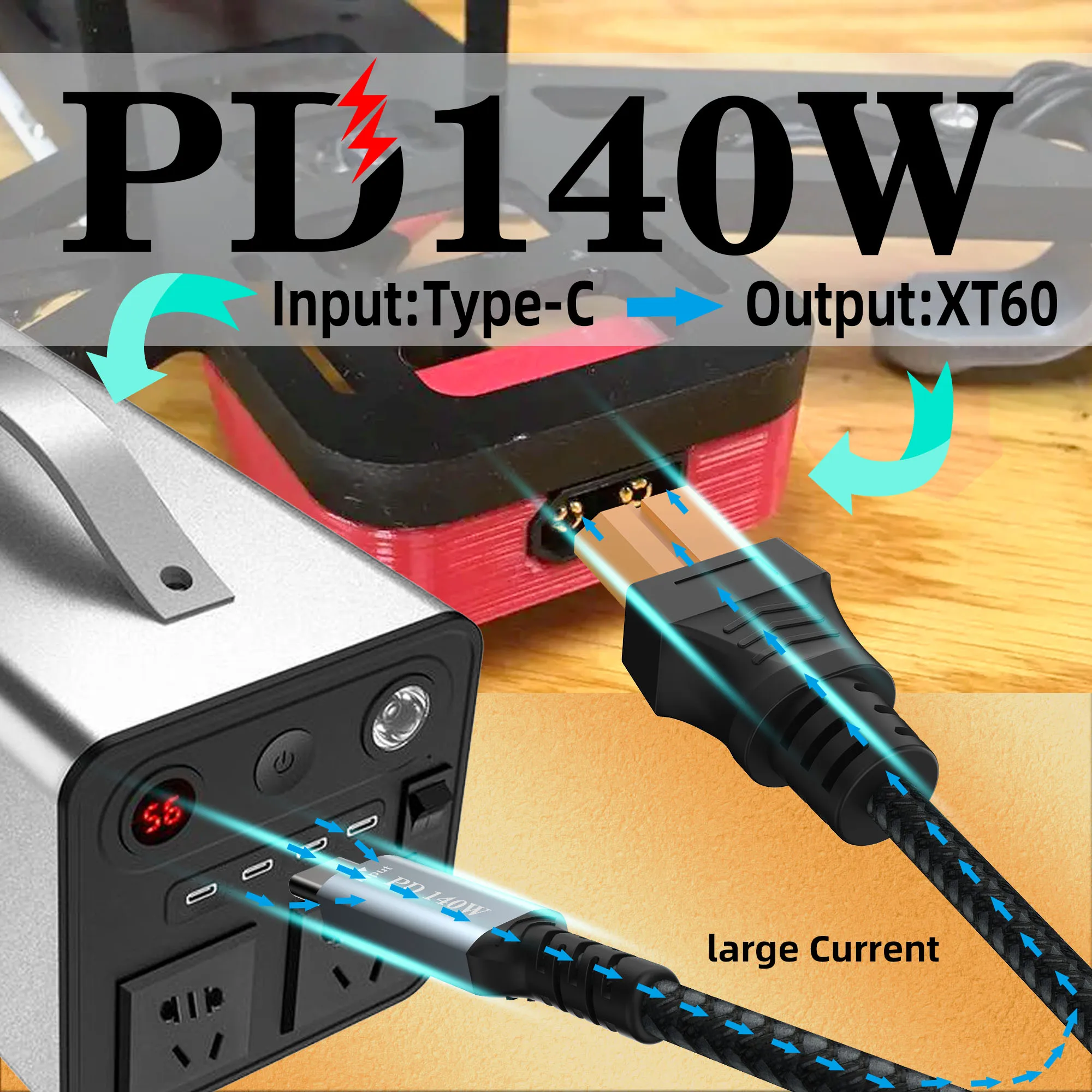 Type C to XT60 adapter cable, USB C to XT60 charging cable, USB C male to XT60 female cable, PD 140W charging cable