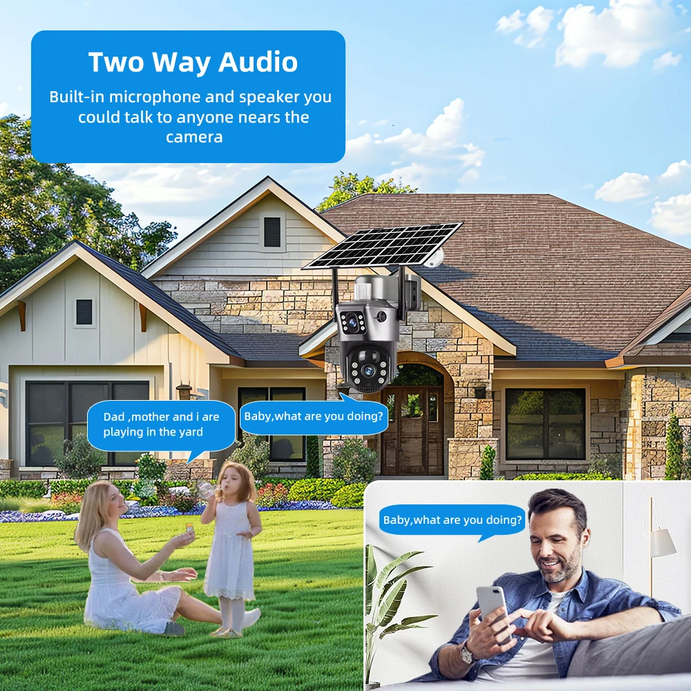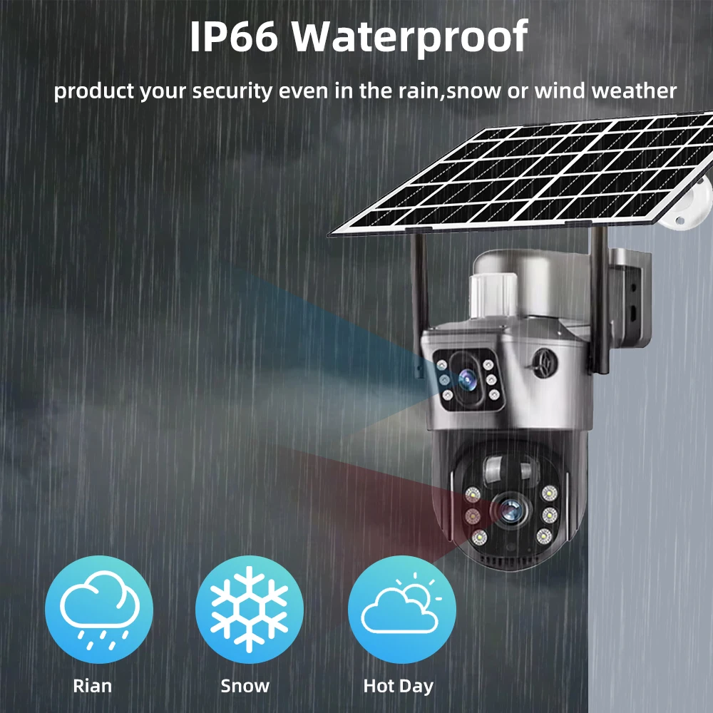 Outdoor Solar 4G Camera 8MP 4K Low Power Battery Dual Lens Three Screen PIR Human Detection IP Cameras Security Protection