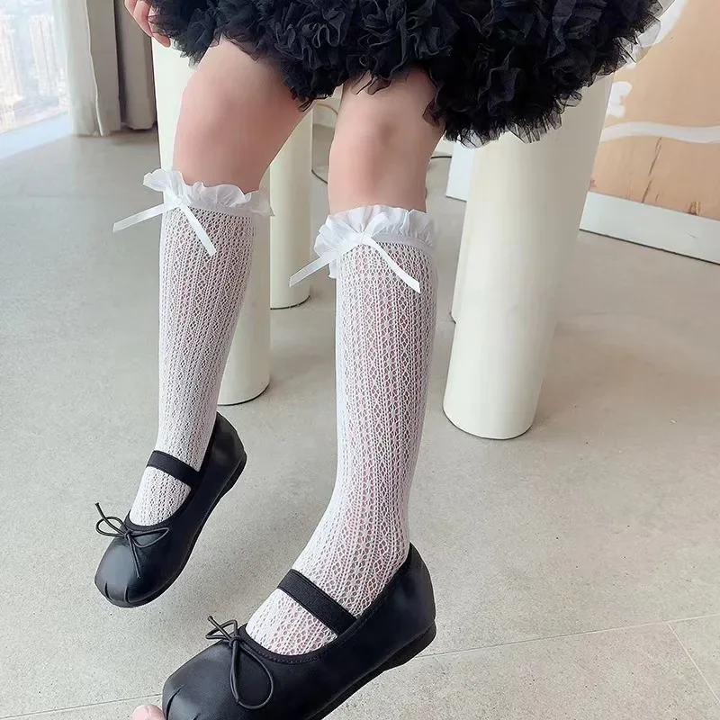 Girls Long Tube Lace Stockings Sweet Bow Pattern Mesh Sock Baby Girl Ballet Fishing Net Frilly Socks Lolita Leggings