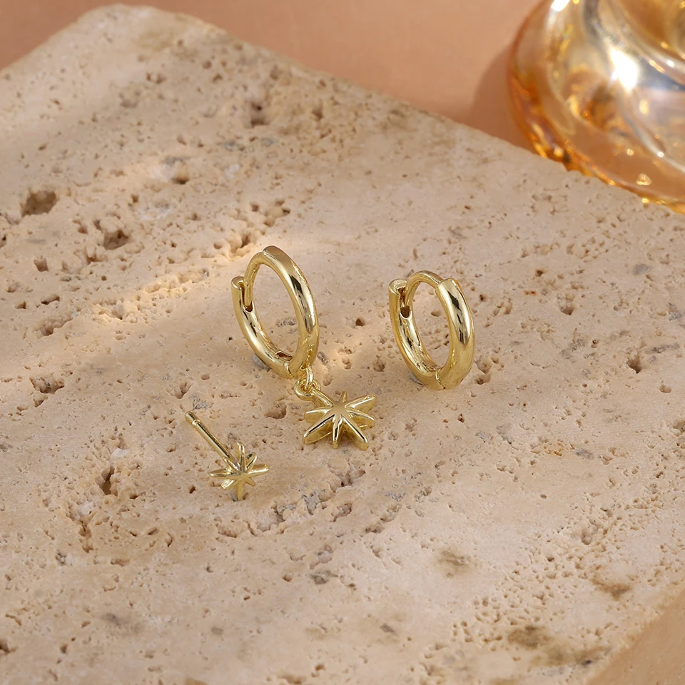 ZAKOL 3 Piece Fashion Round Star Drop Earrings Set for Women Gold Color Dangle Earring Punk Uni Rock Jewelry