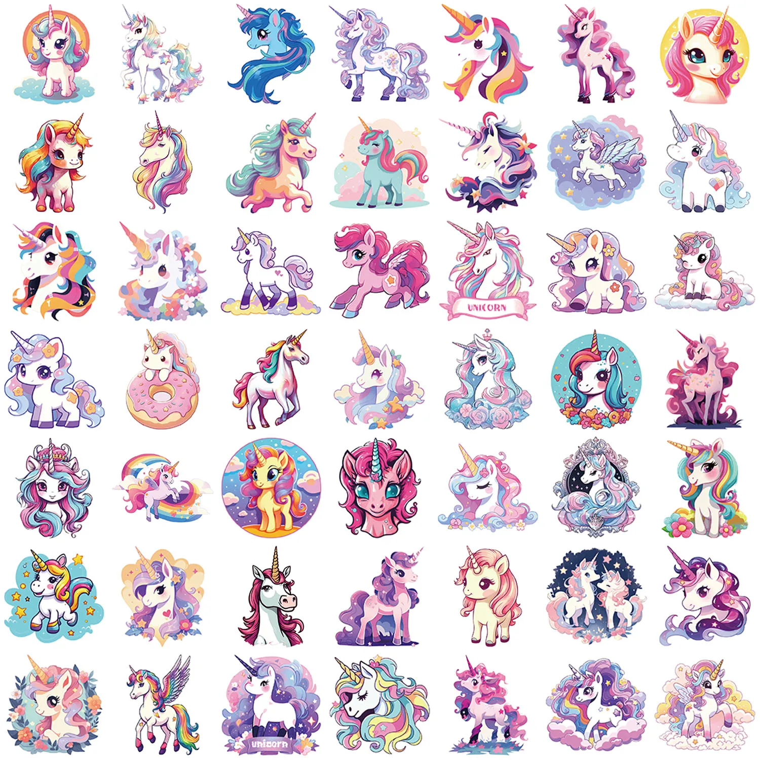 50PCS Fun Cartoon Unicorn Graffiti Stickers Scrapbooking Collage Material Phone Cases Guitar Notebooks DIY Decorative