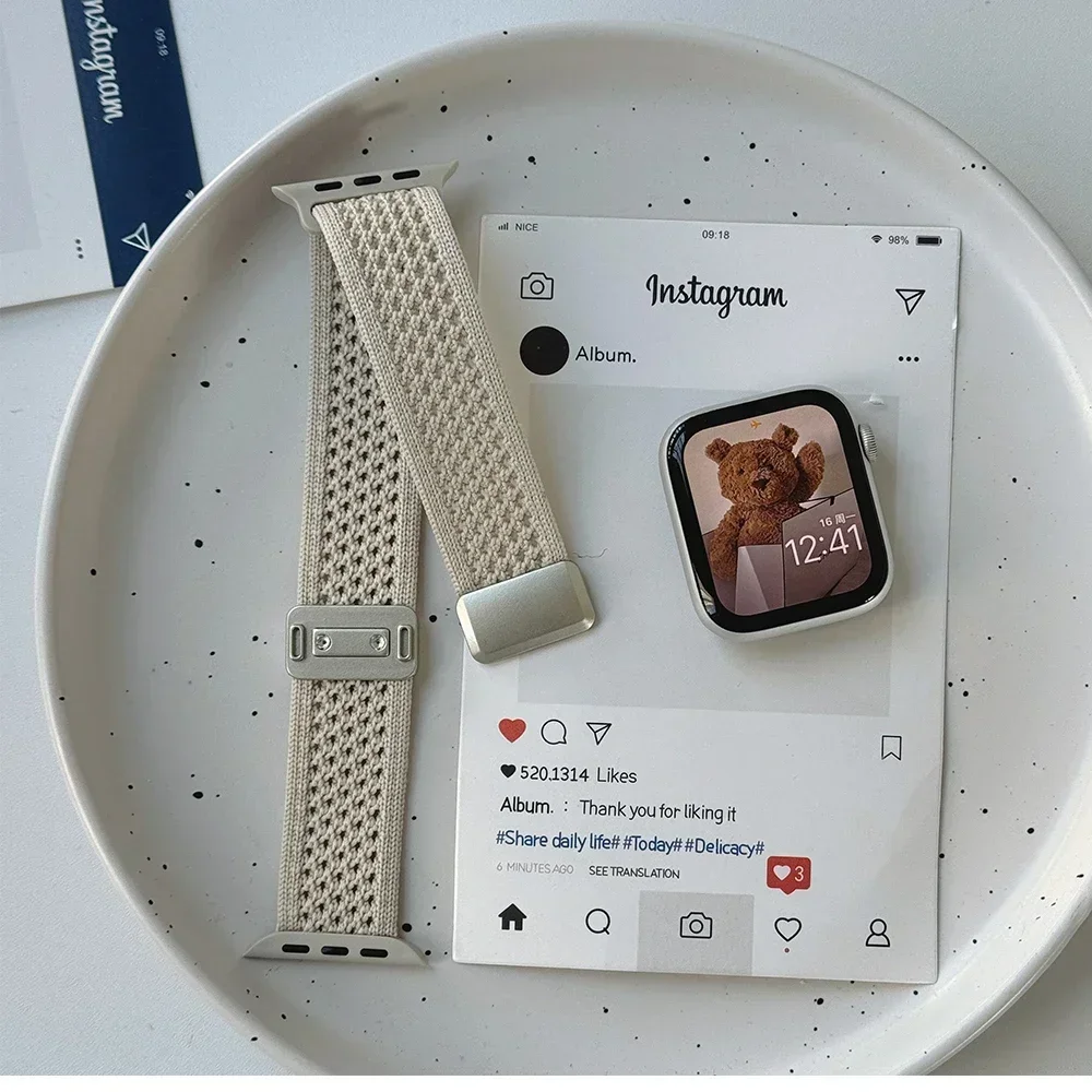 Braided Nylon Strap for Apple Watch Band Ultra 2/1 49mm 46mm 45mm 44mm 42mm 41mm 40mm Magnetic Bracelet For IWatch 10 9 8 Se 7 6