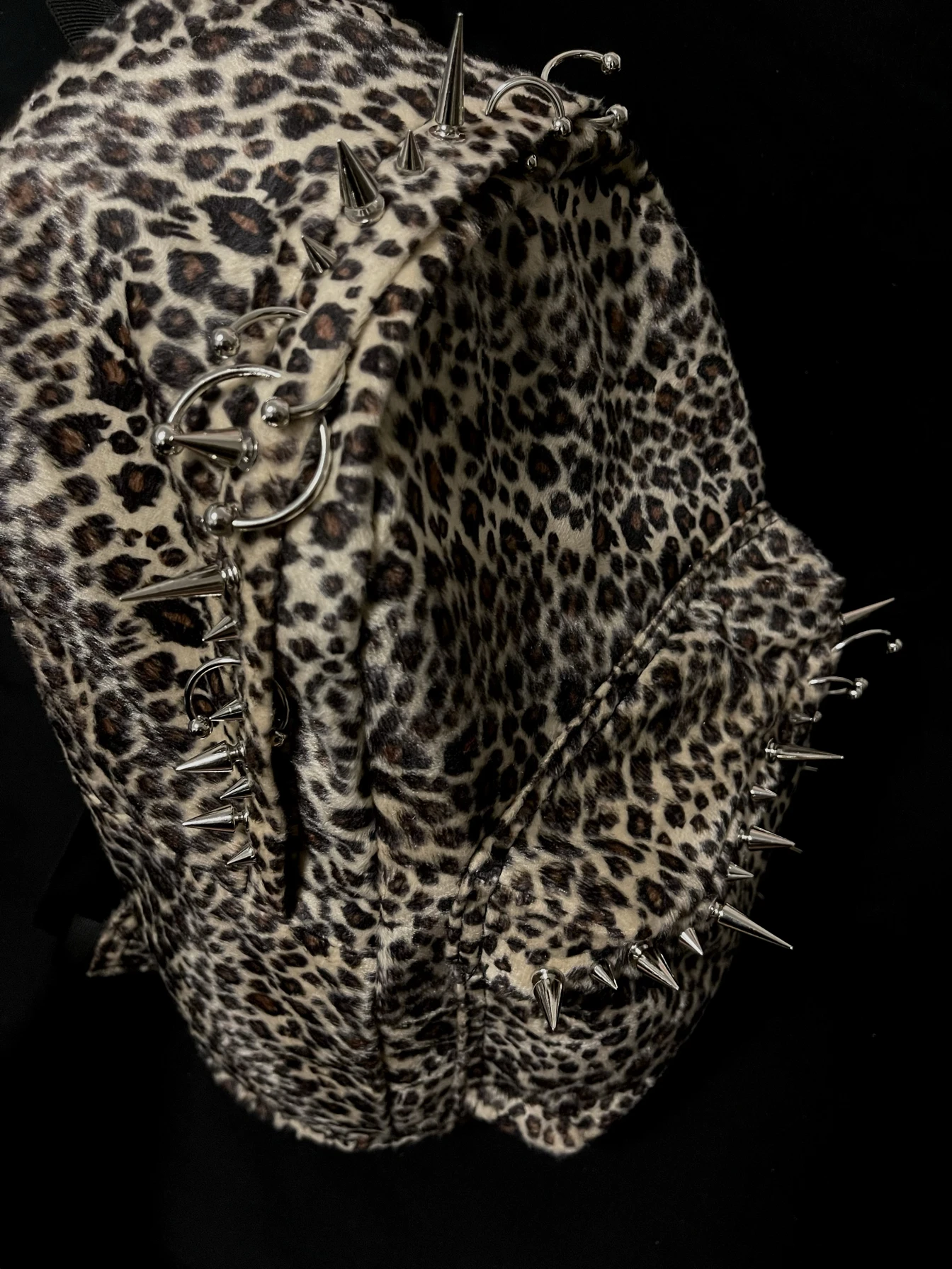 punk rivet leopard print backpack men's bag large capacity fashion Backpacks for women