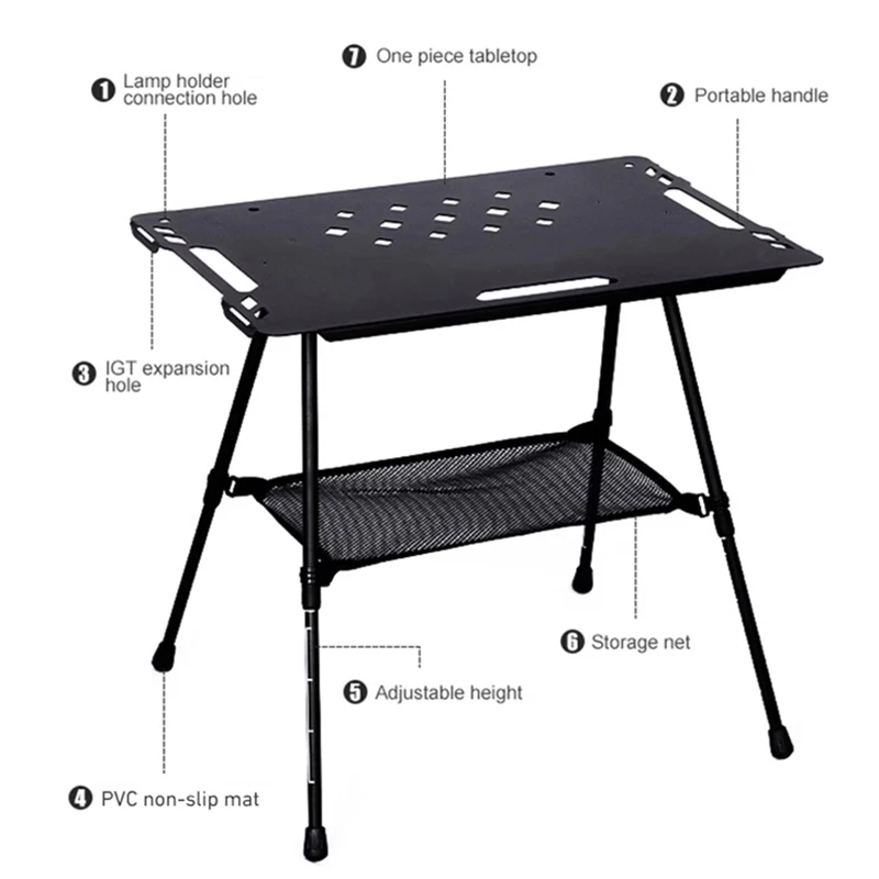 WESTTUNE Outdoor IGT Tactical Table Lightweight Multifunctional Folding Aluminum Alloy Camping Picnic Table with Adjustable Legs