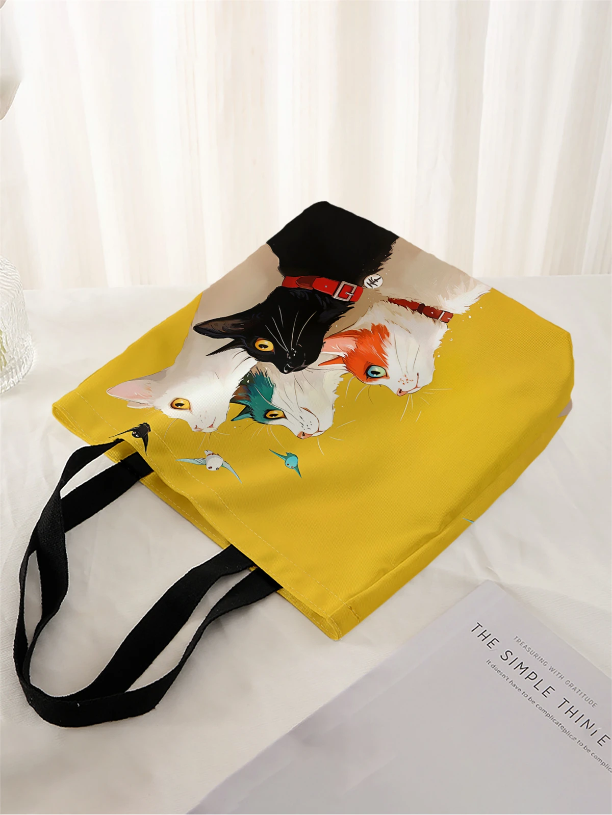 1pc,stacked cat handbag, reusable fashionable handbag, multifunctional handbag, printed canvas shopping bag