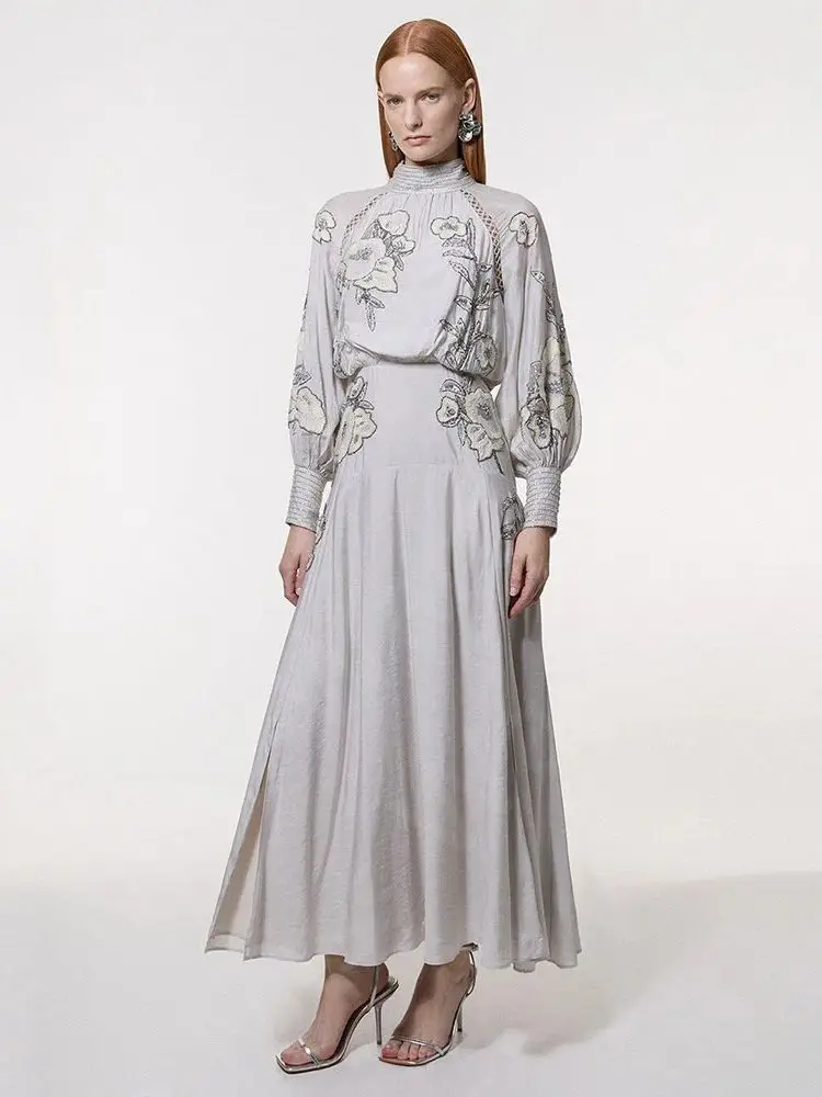 aliexpress , ali , shop , ali shop , online , store , online shop , online store , buy , sell , Customized Vintage Silver Prom Dresses Ankle Length Wedding Party Dresses Long Sleeves High Neck Evening Gowns 2025 Side Slit