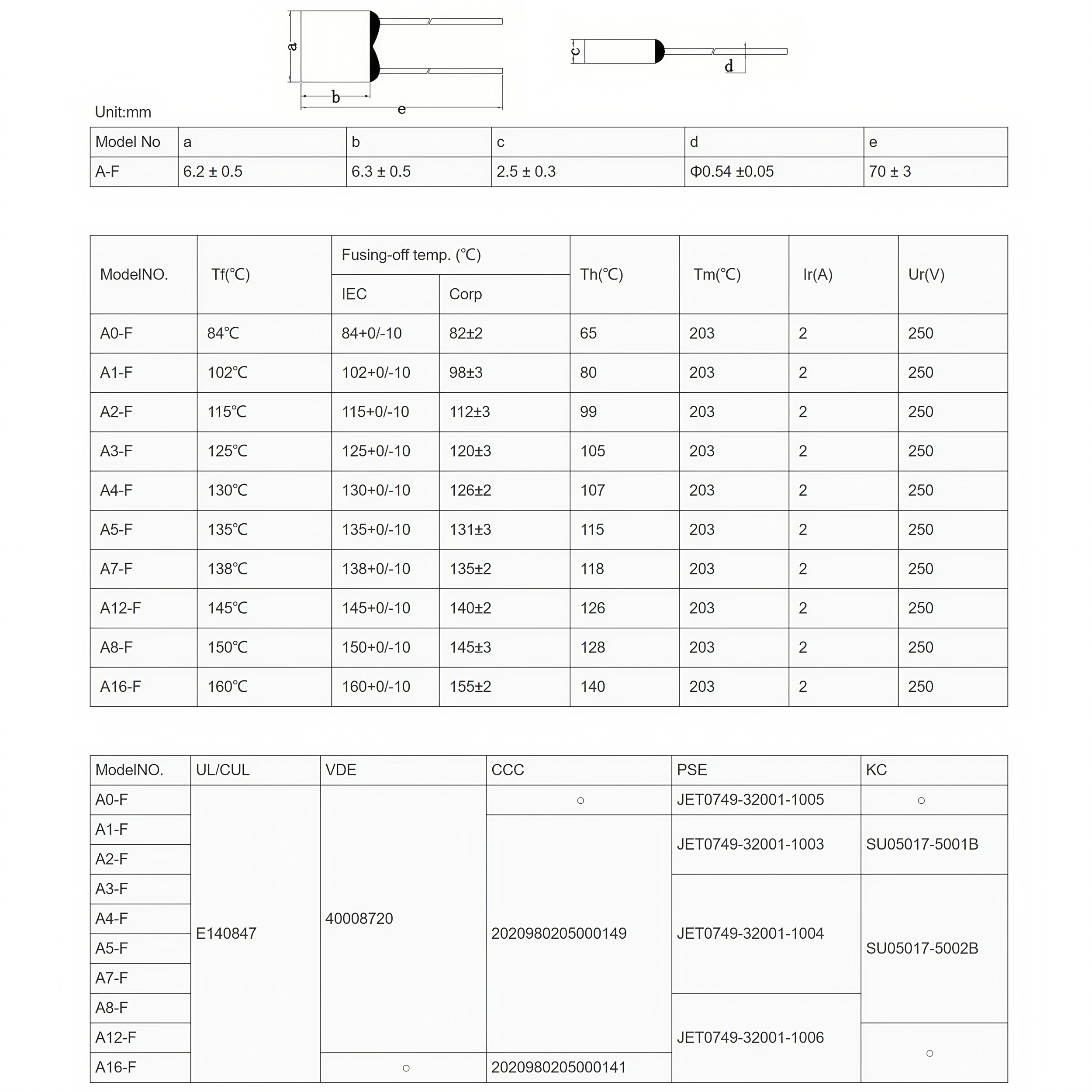 10PCS AUPO JET 2A 250V Thermal Fuse RH 84C 102C 115C 125C 130C 135C 138C 145C 150C A0-F A1-F A2-F A3-F A4-F A5-F A7-F A8-F A12-F