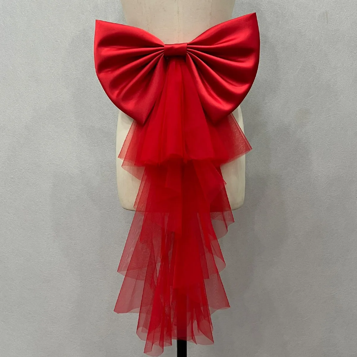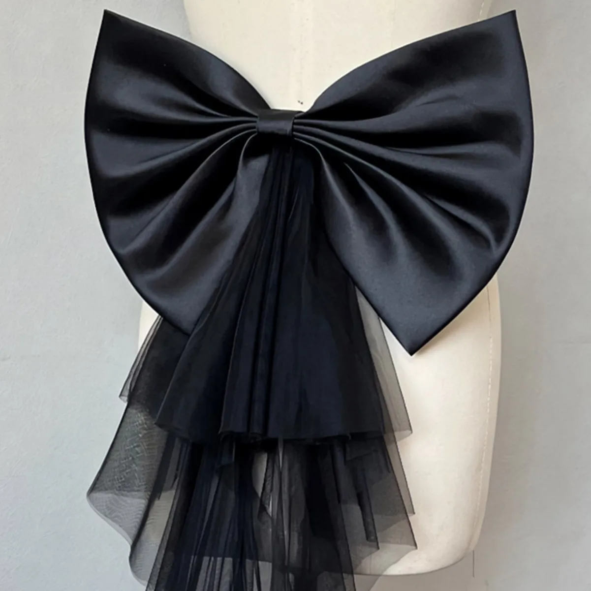 Elegant Detachable Satin Tulle Bow Wedding Dress Decorations Women's Dress Bridal Belt Big Satin Bow knots Accessories