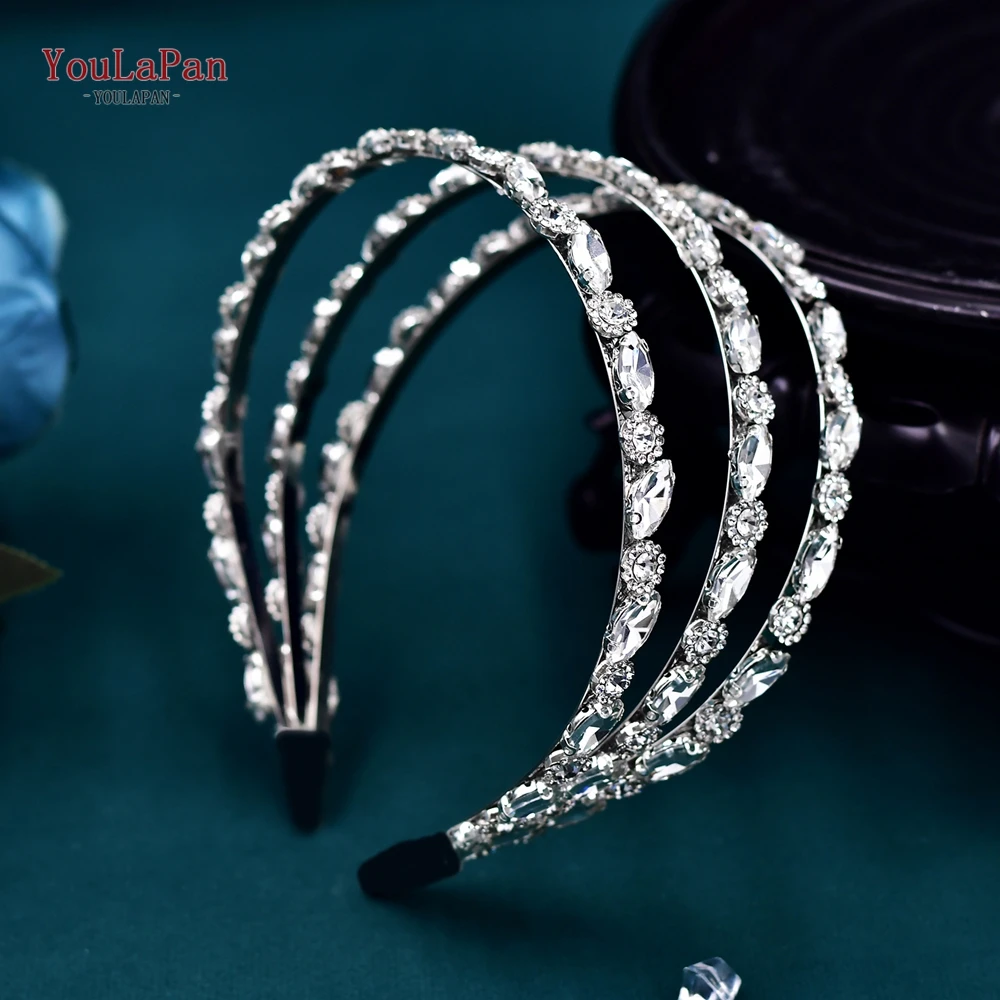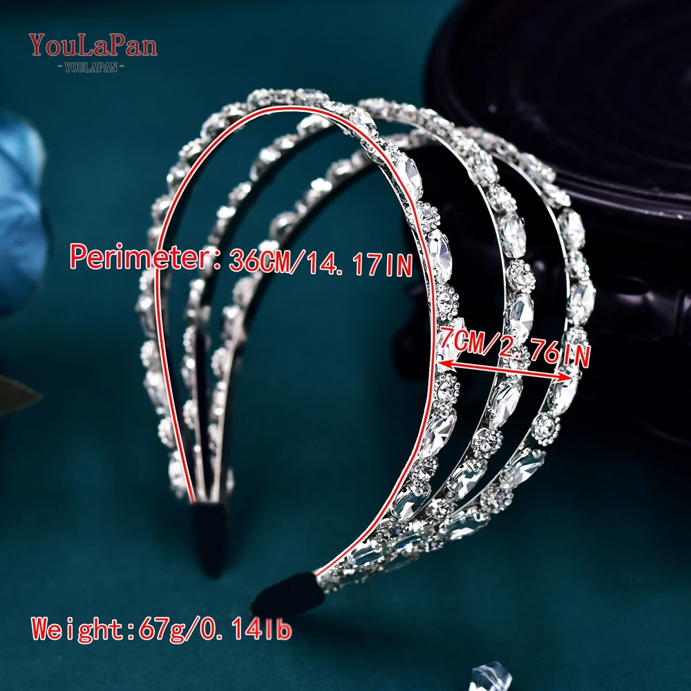 YouLaPan Sparking Rhinestone Wedding Headband Multilayer Crystal Bridal Headpiece Wedding Hair Accessories Party Tiara HP597