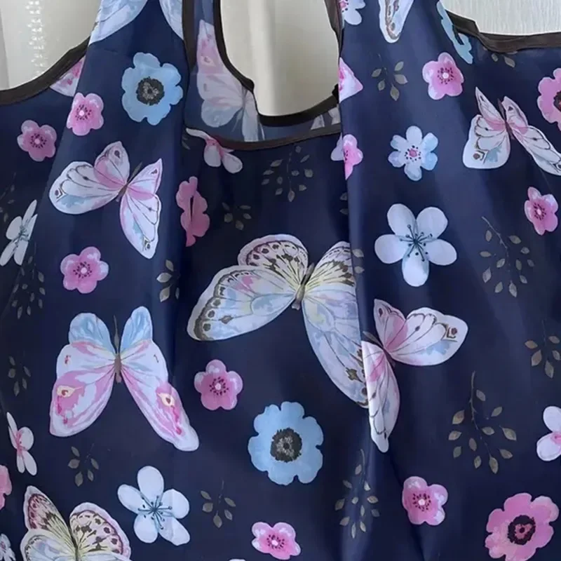 Portable Folding Shopping Bag Butterfly Flower Printing Grocery Bag Eco-friendly Reusable High-capacity Tote Bags 2024 New
