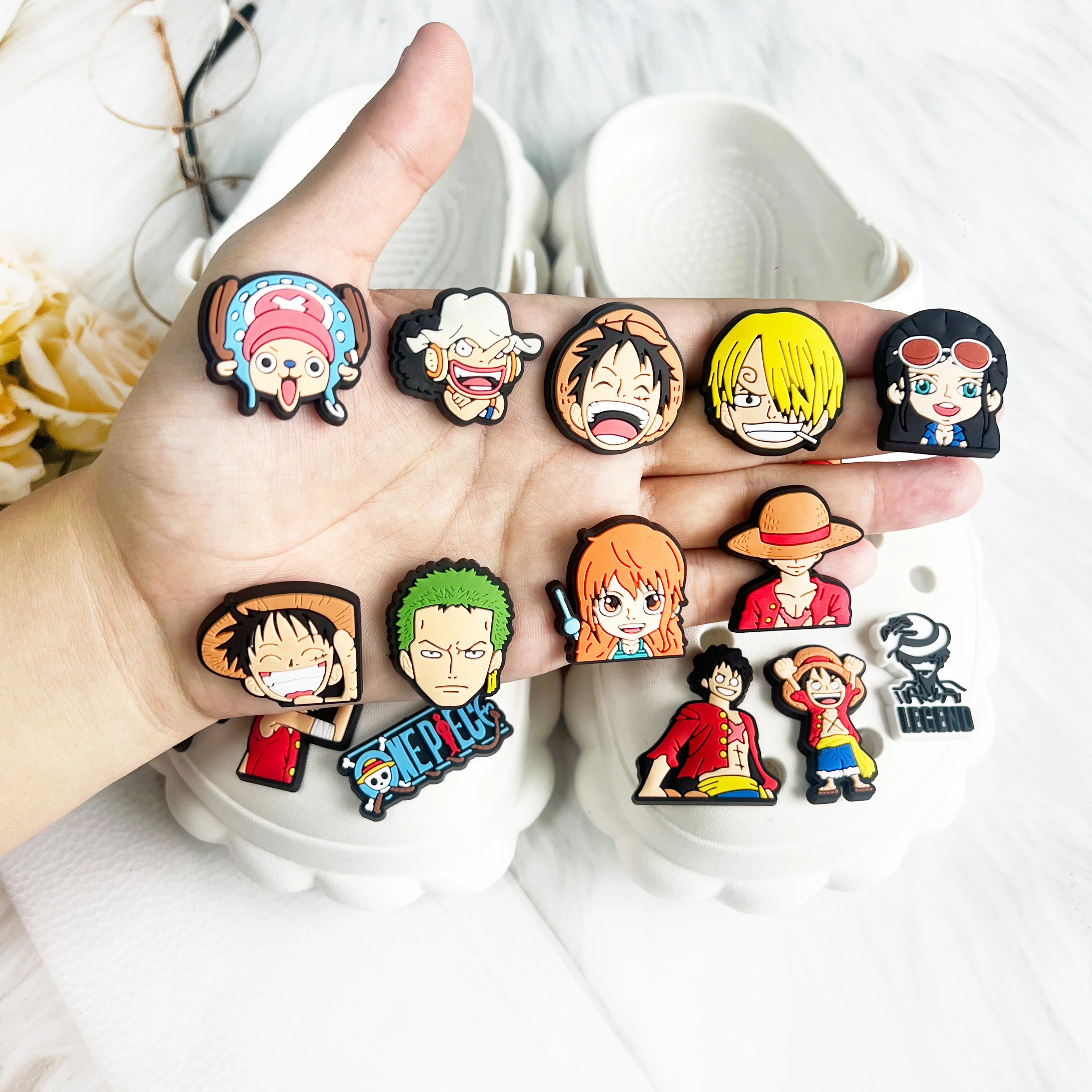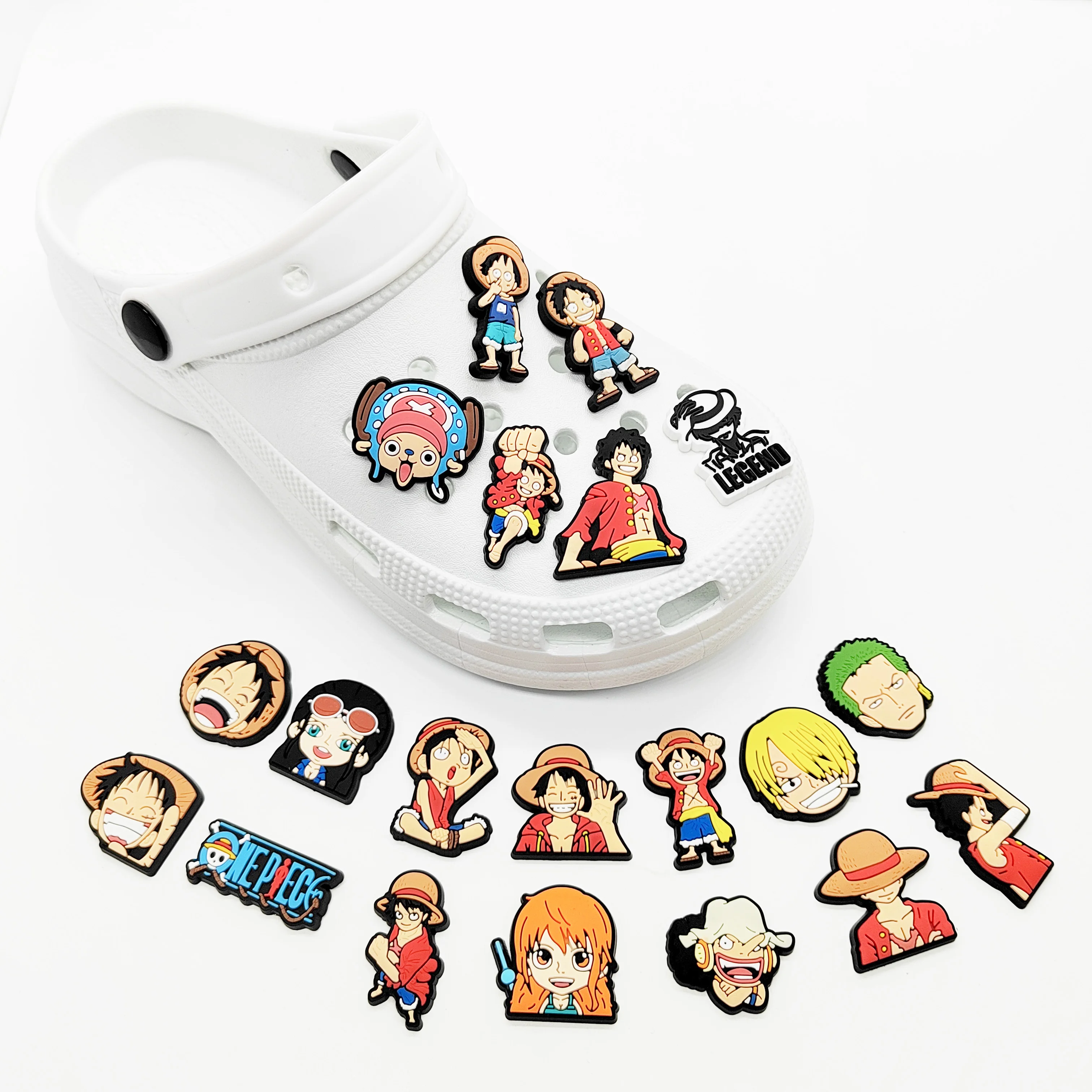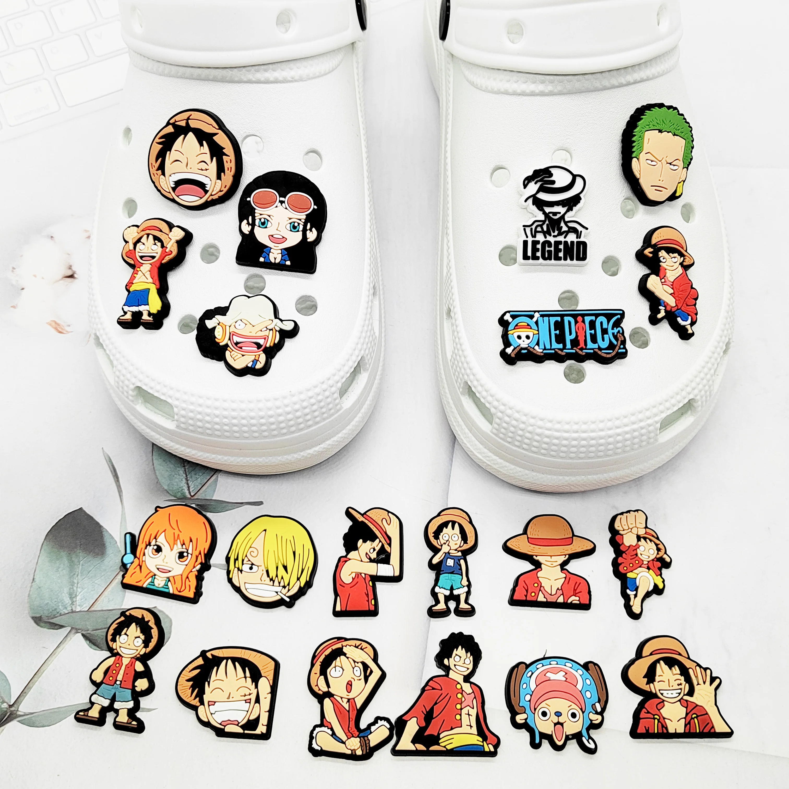 20pcs Miniso Cartoon One Piece Luffy Shoe Buckle Charms Fashion Boys Girls Sandals Shoes Decoration Fit Birthday Gift