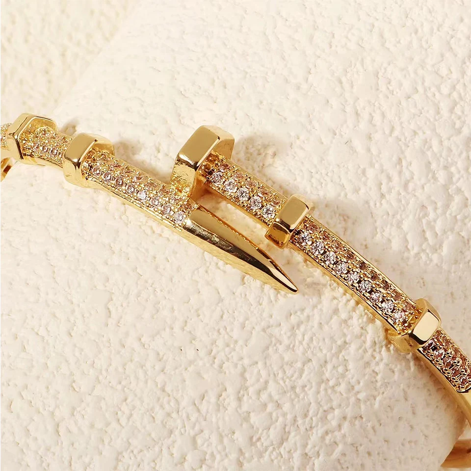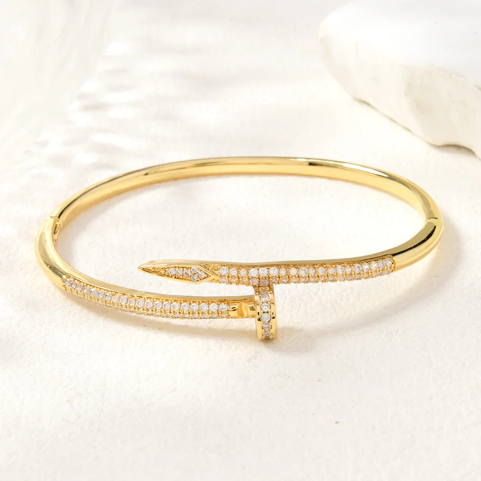 Classic Woman's Nail Shaped Open Bracelet Luxurious Gold Color Sparking Zircon Bracelet For Fashion - forward Events