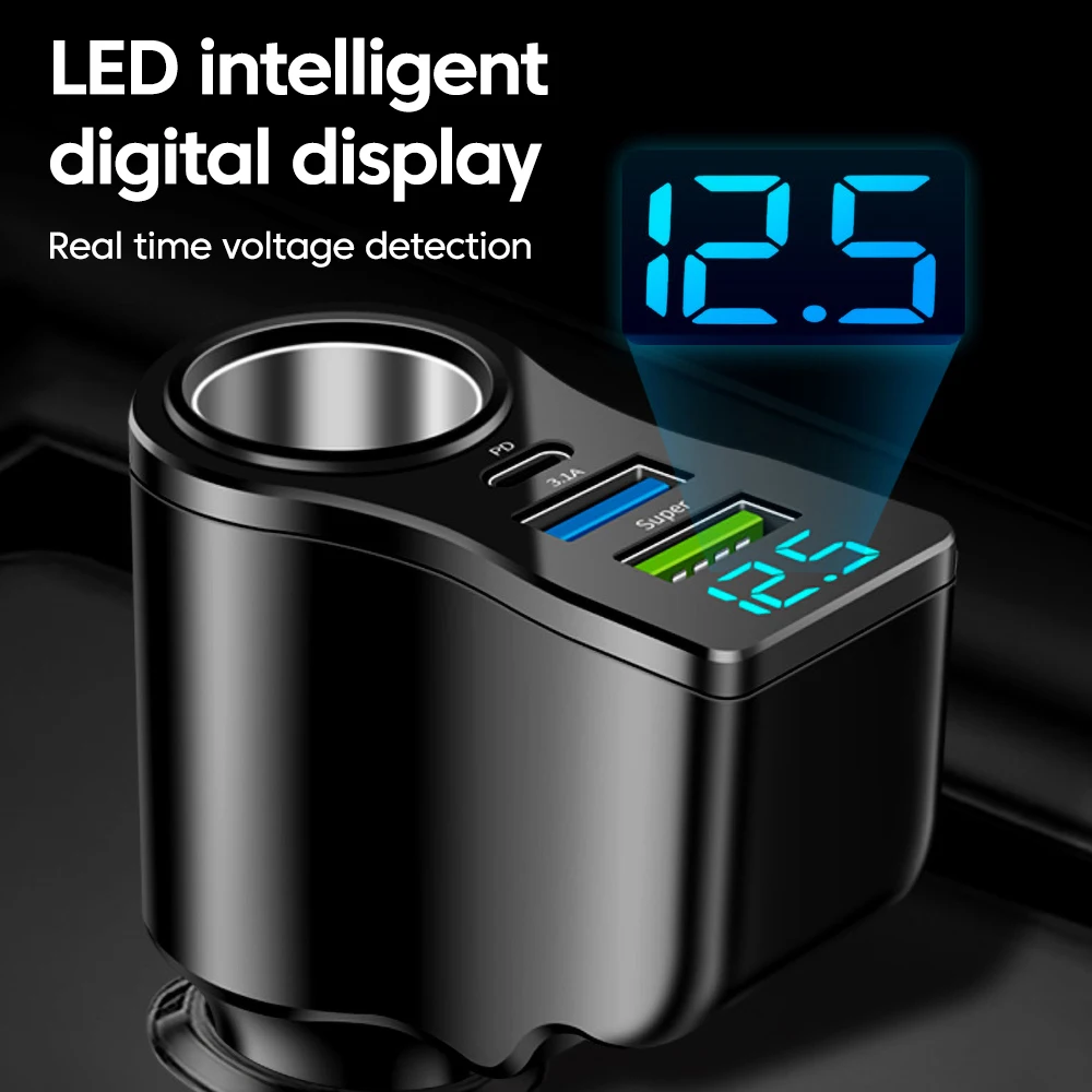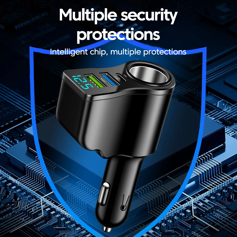 66W 4 Ports multifunctional Car Cigarette Lighter Power Adapter 3.1A Dual USB PD Car Phone Fast Charger For iphone Huawei Ipad