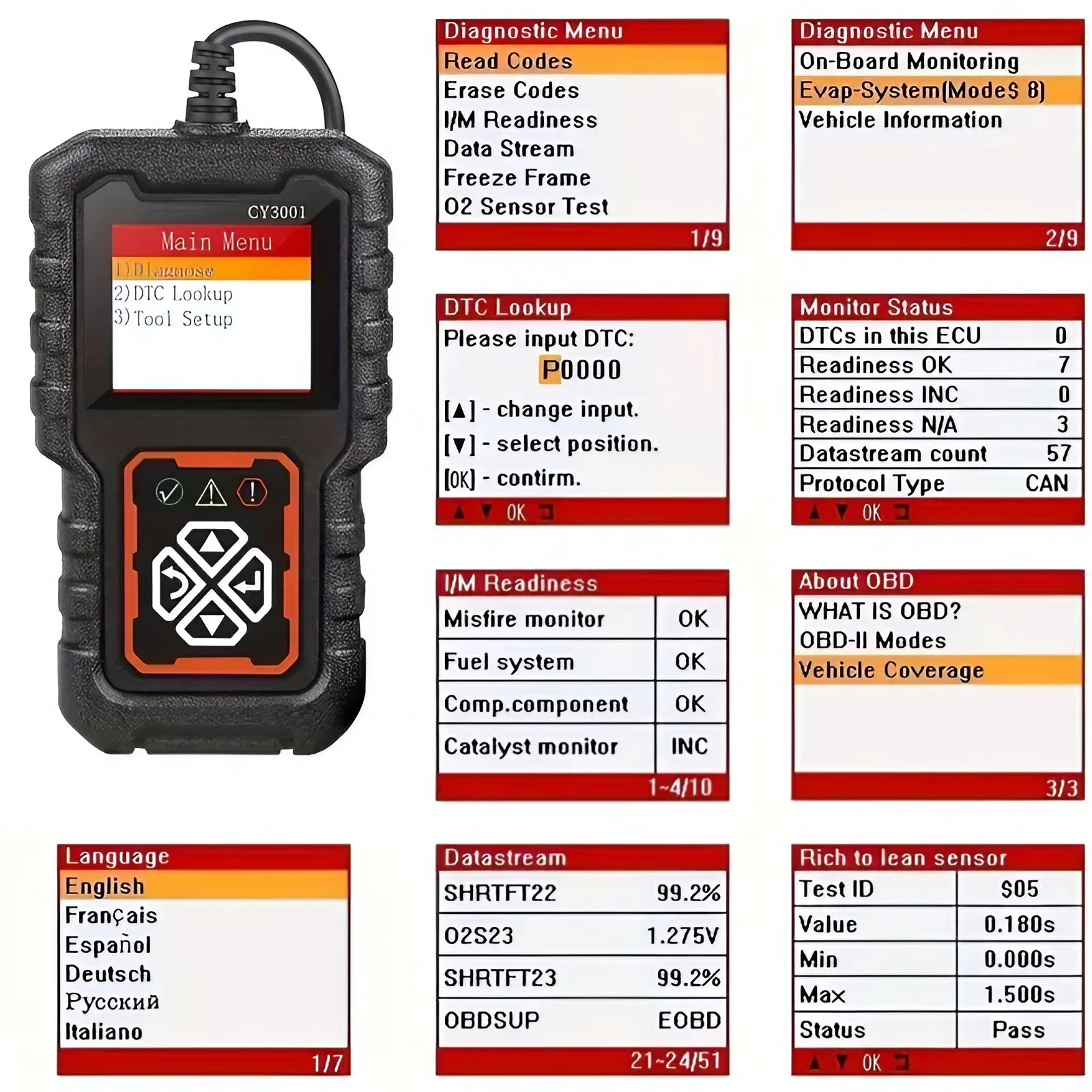 USB Powered Car Diagnostic Tool Engine Code Reader CAN Data Streaming DTC Lookup I/M Readiness Tool for Automotive Repair