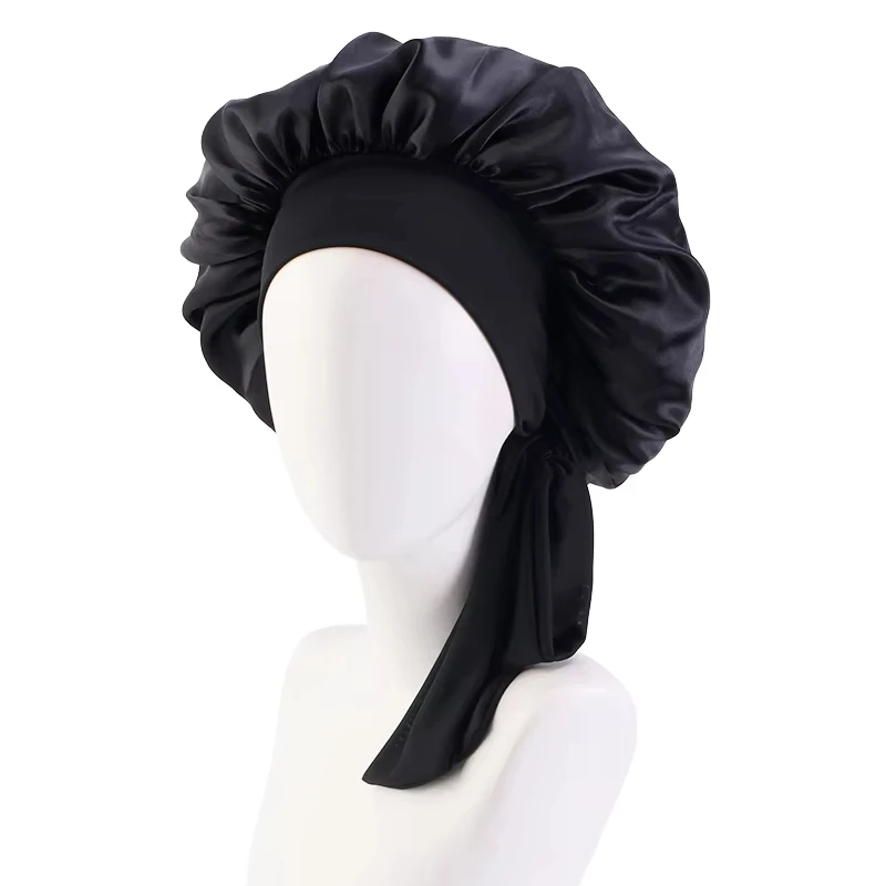 New Women Satin Solid Sleeping Hat Silky Bonnets With Tie Bands Elastic Shower Cap Adjustable Cap For Curly Hair Bonnets