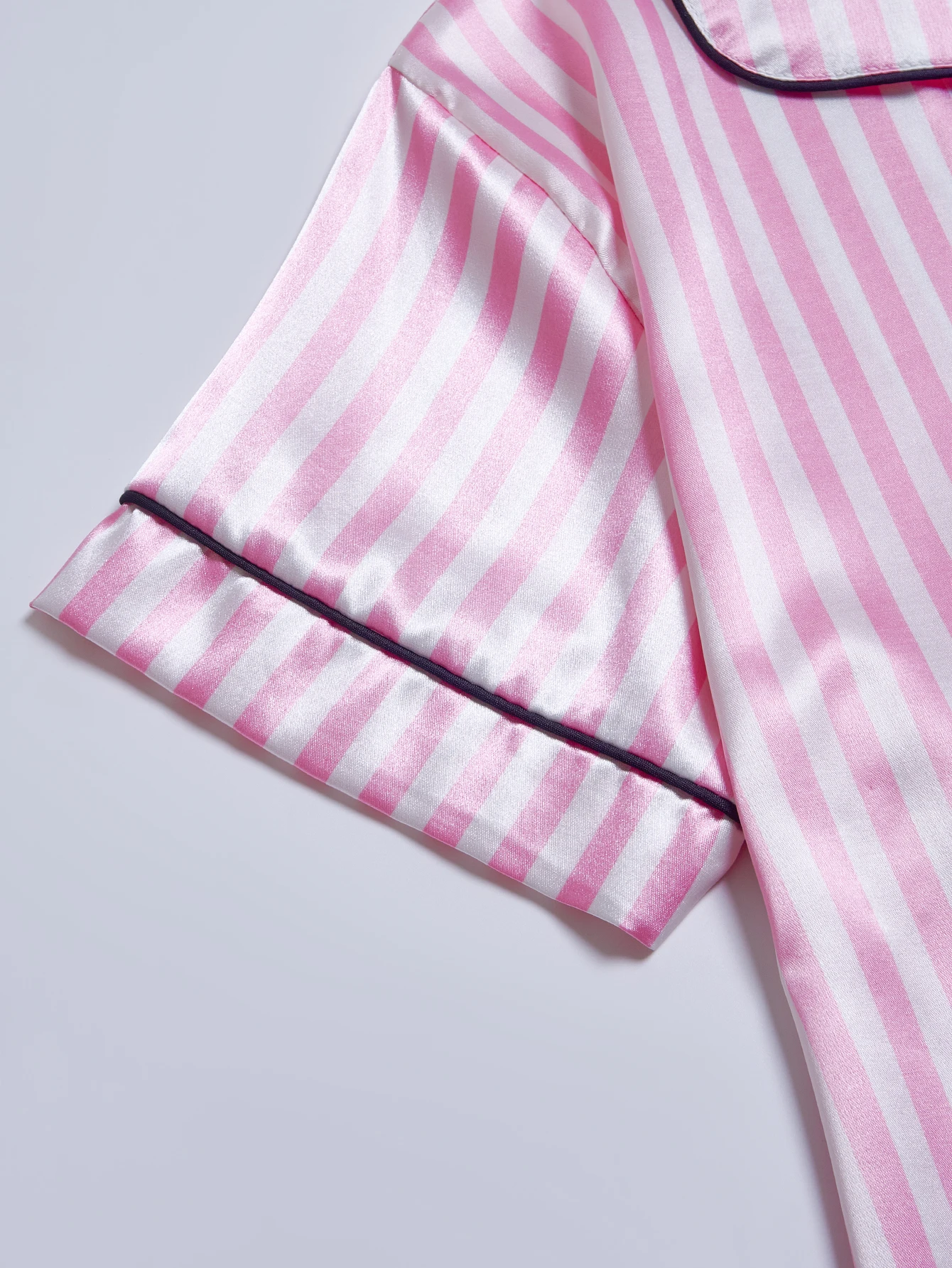 ALI shop - search results ... ... Striped Embroidered Letter Pocket Short Sleeve and Shorts Pajama Set, Casual Satin Sleepwear with Lapel Collar and Button Detail ::: 2021 ::: :::