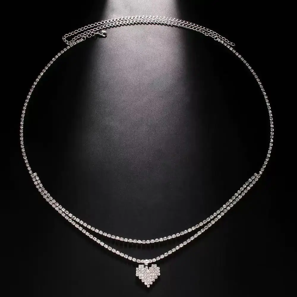 Luxury Rhinestone Double Chain Water Drop Waist Chains Body Jewelry for Women Crystal Body Belly Chain Body Decoration Accessory