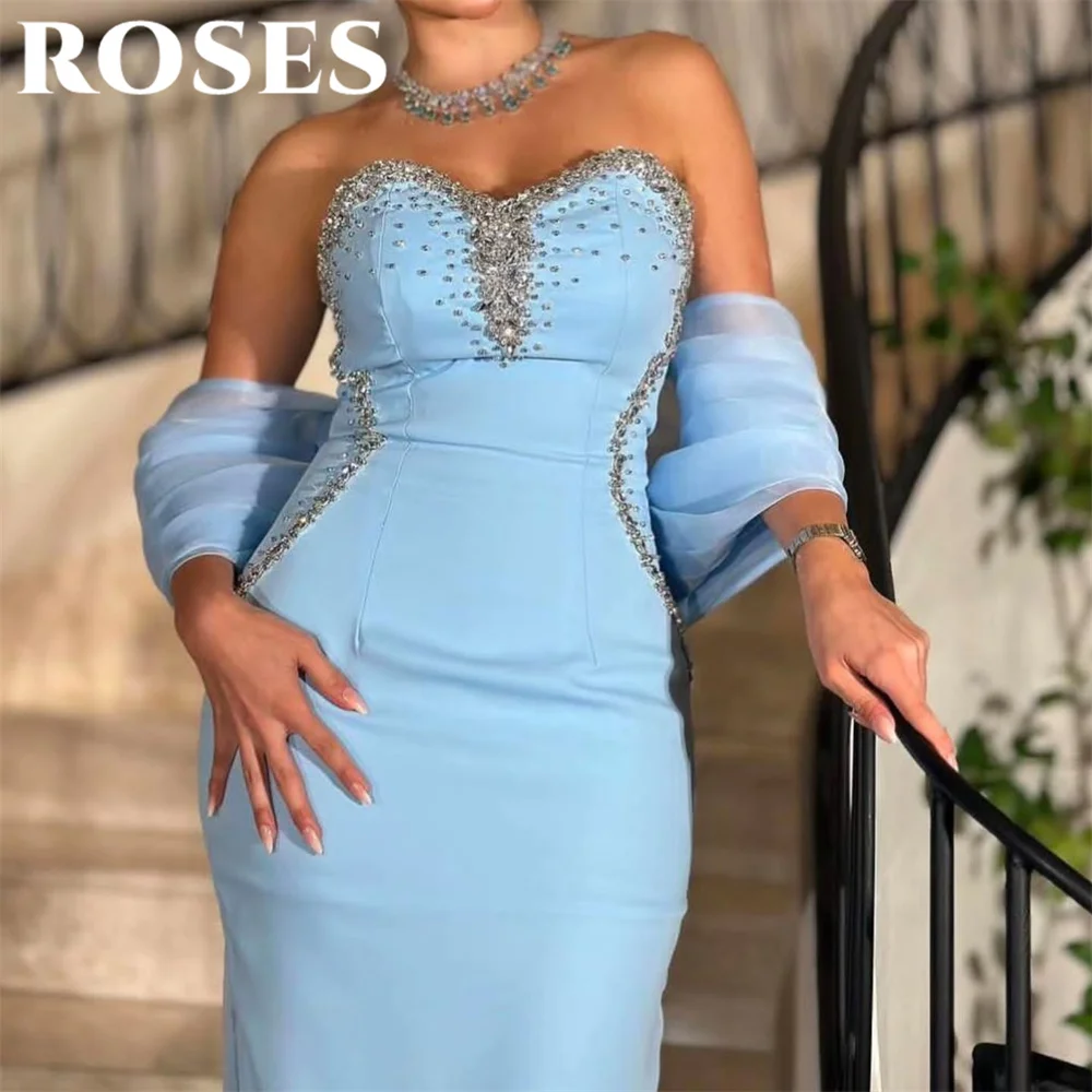 aliexpress , ali , shop , ali shop , online , store , online shop , online store , buy , sell , ROSES Sky Blue Party Dress with Sequin Beaded 3D Flower Mermaid Night Dress with Pleats Off Shoulder Celebrity Dress Customized