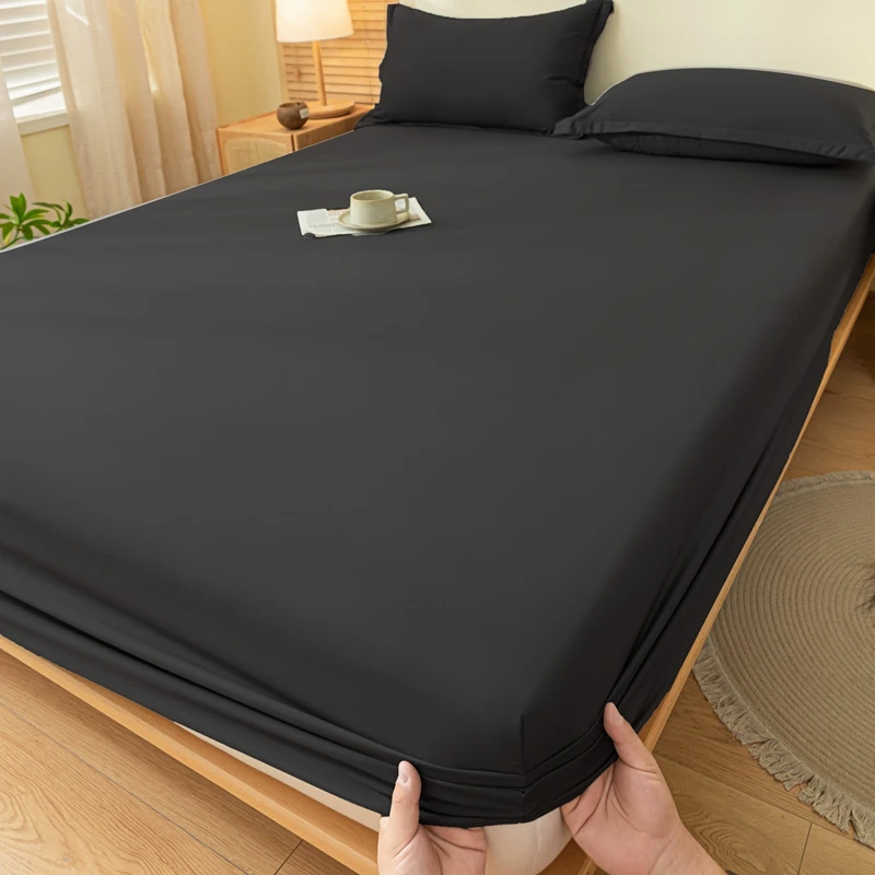1pc Skin-friendly Bed Cover with Elastic Band Solid Color Brushed Bed Sheet Single/Queen/King Fitted Bedsheet(without pillowcase