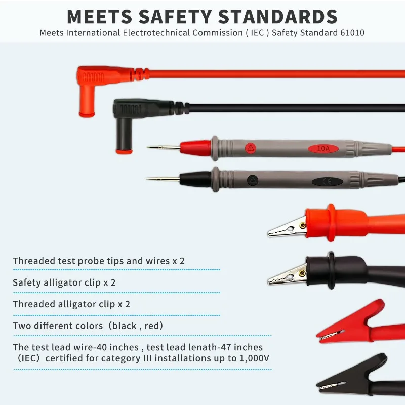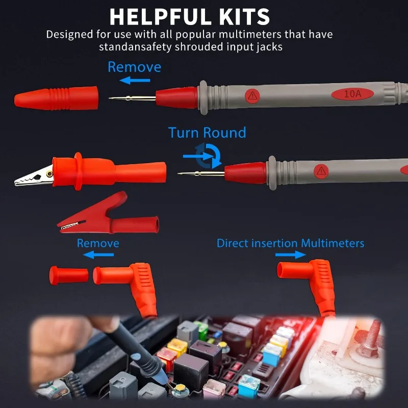 10A 1000V Probe Test Leads Pin for Digital Multimeter Needle Tip Multi Meter Tester Lead Probe Wire Pen Cable and Alligator Clip