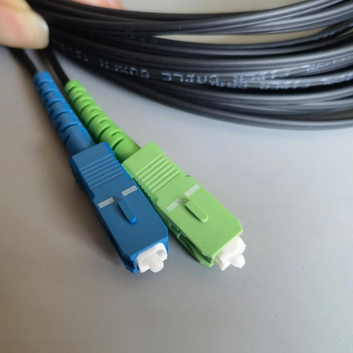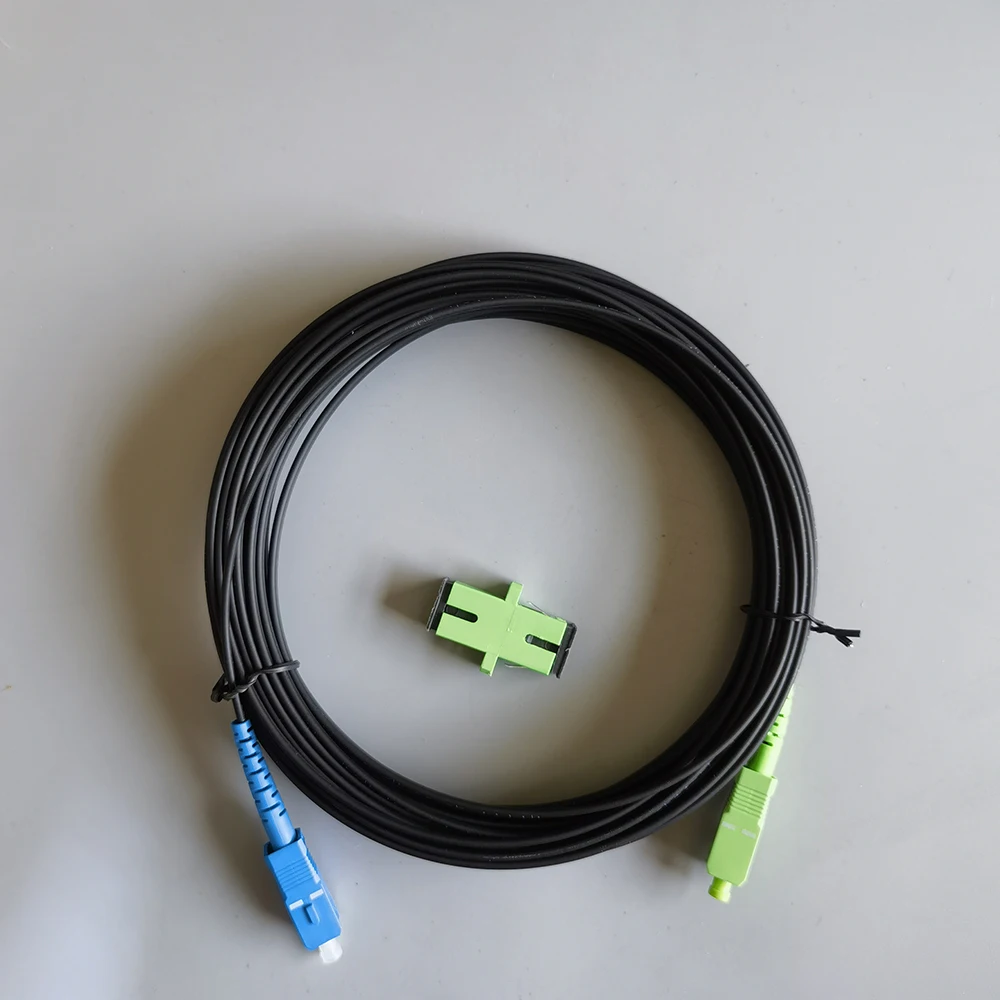 10M/15M/20M/30M/40M/50M Indoor Fiber Optic Drop Cable Single-Core Black SC/APC To SC/UPC FTTH Drop Cable With Free Adapter