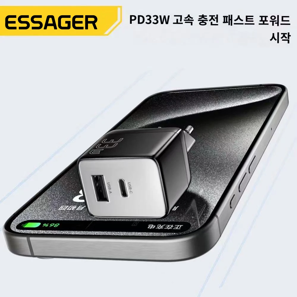 Essager 33W Korea Plug GaN Charger USB Type C For iPhone 16 15 14 Pro Max PD Fast Charging Charger For iPad Macbook Samsung S23