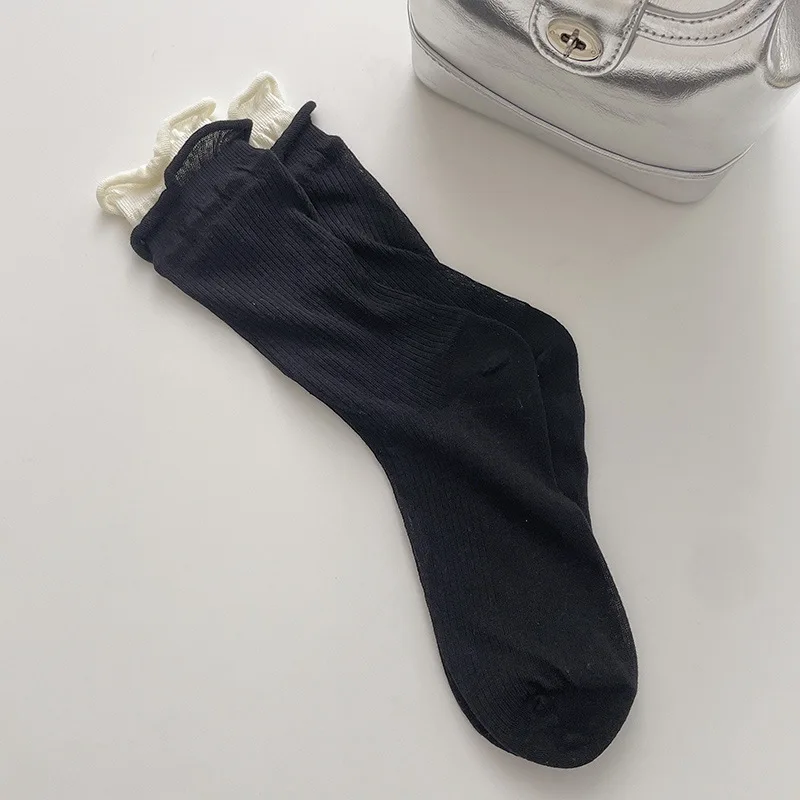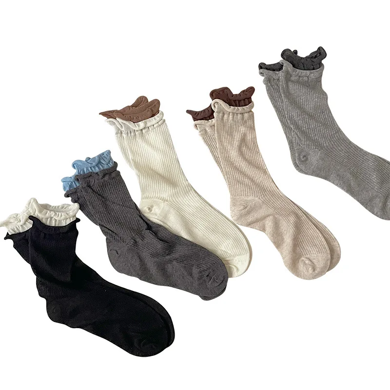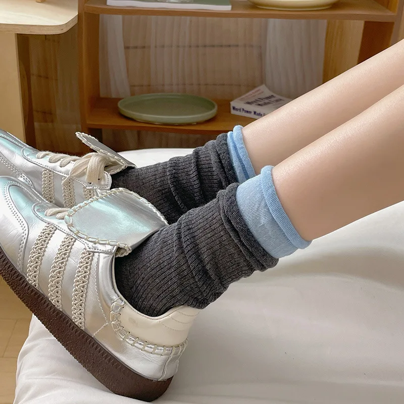 Double Ribbed Matching Midtube Socks for Women and Candy Matching Socks for Morandi Fashion Matching Stockings for Women