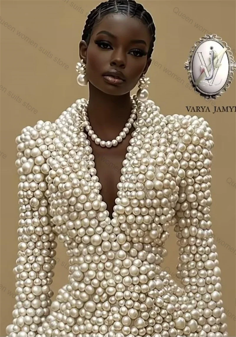 Full Pearls Women Suit 1 Piece Blazer Outfit Business Formal Office Lady Jacket Wedding Prom Coat Customized(No Back Pearls)